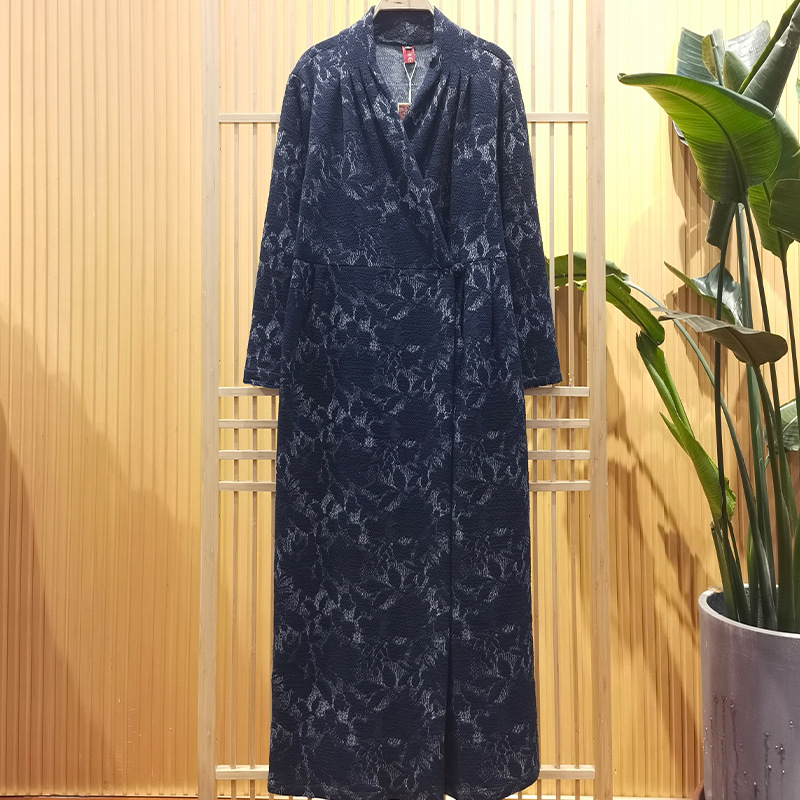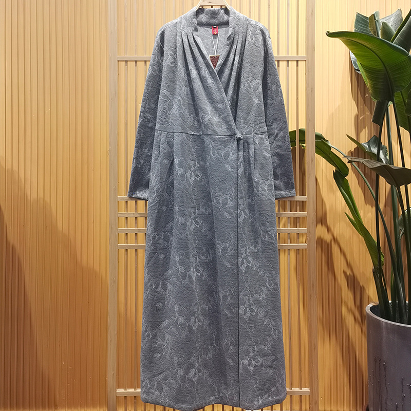 中老年女装2024秋冬新款气质高弹力色织 提花风衣长裙女