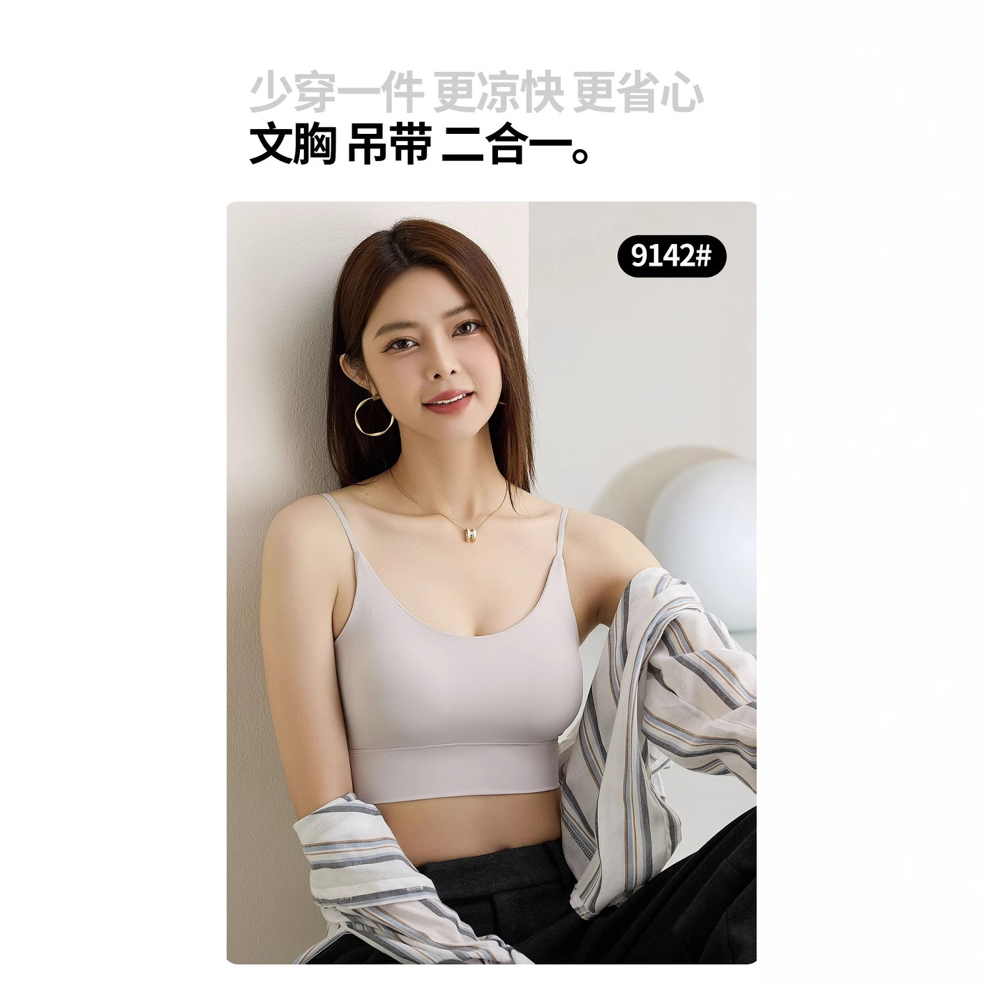9142春夏季运动内衣细肩带一体美背背心女式可外穿防震冰丝美背女