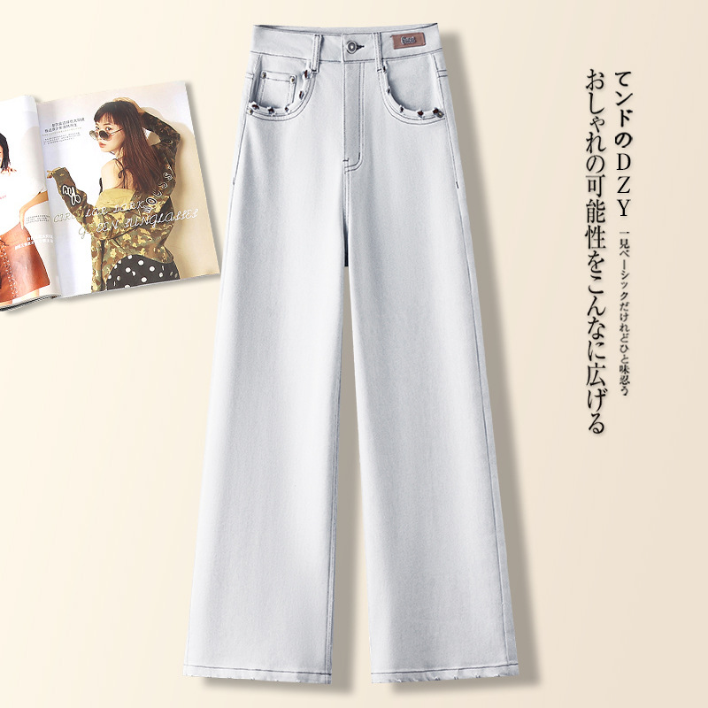 25年春款直筒窄版阔腿牛仔女裤高腰修身时尚百搭牛仔裤
