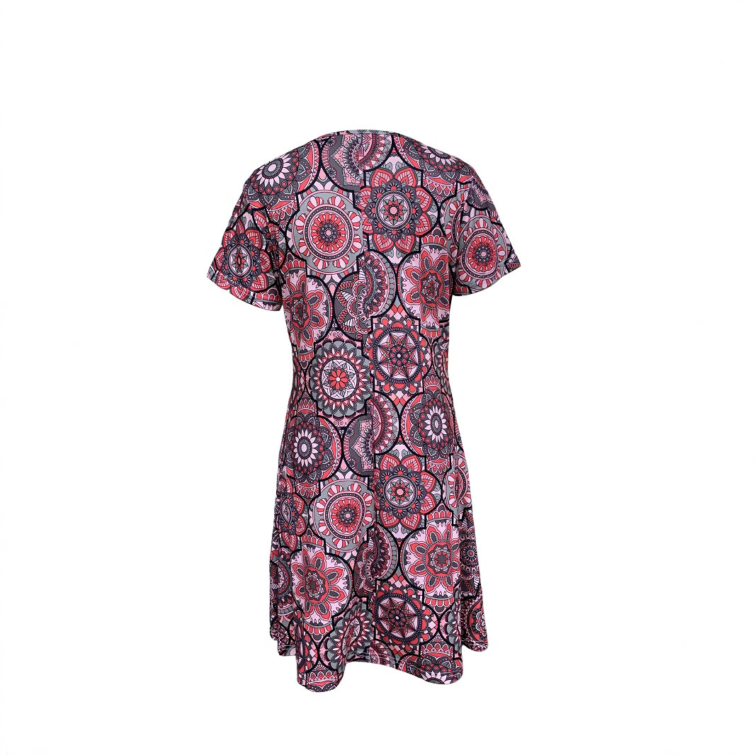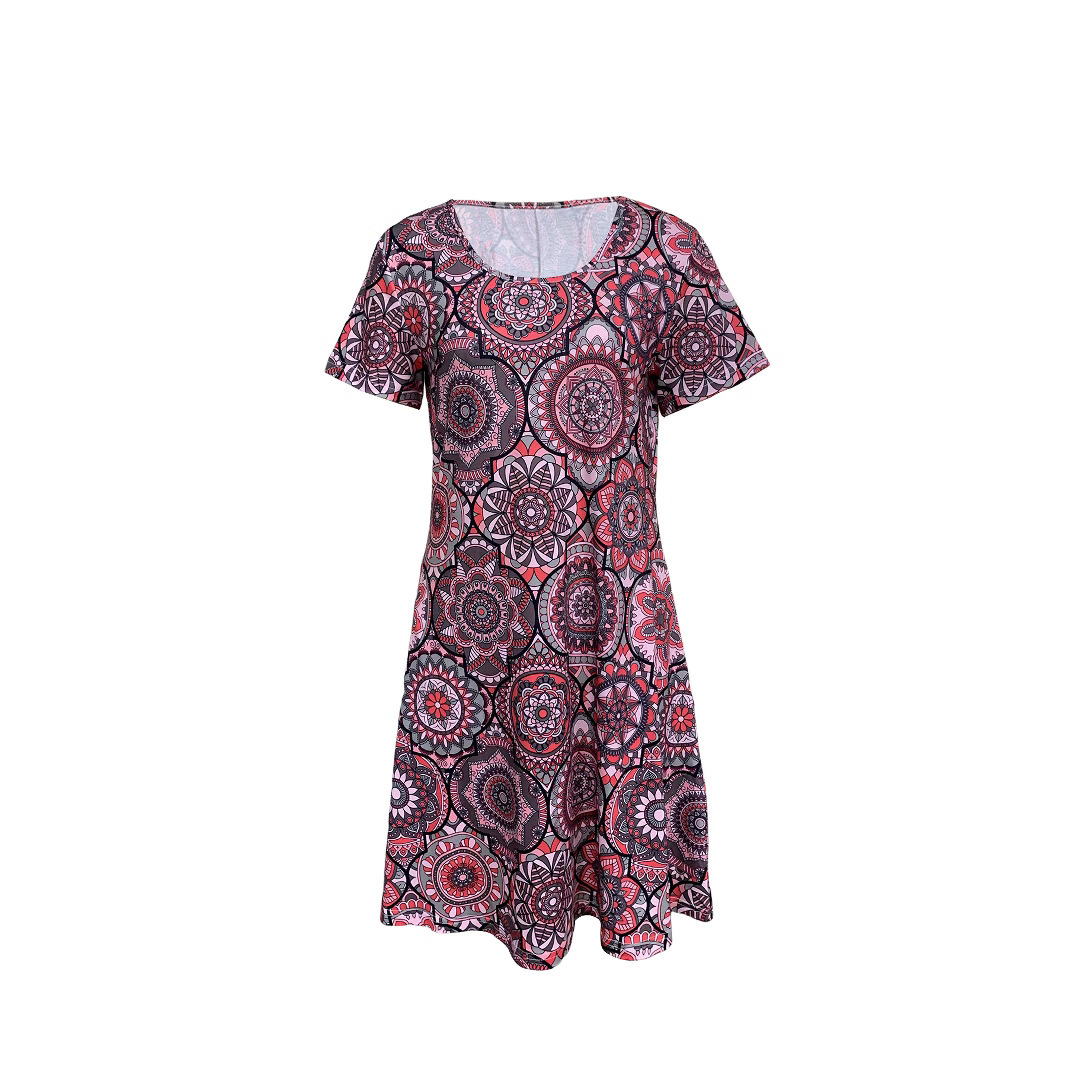 LN1320现货亚马逊2024春夏新款跨境女时尚气质印花度假中长连衣裙