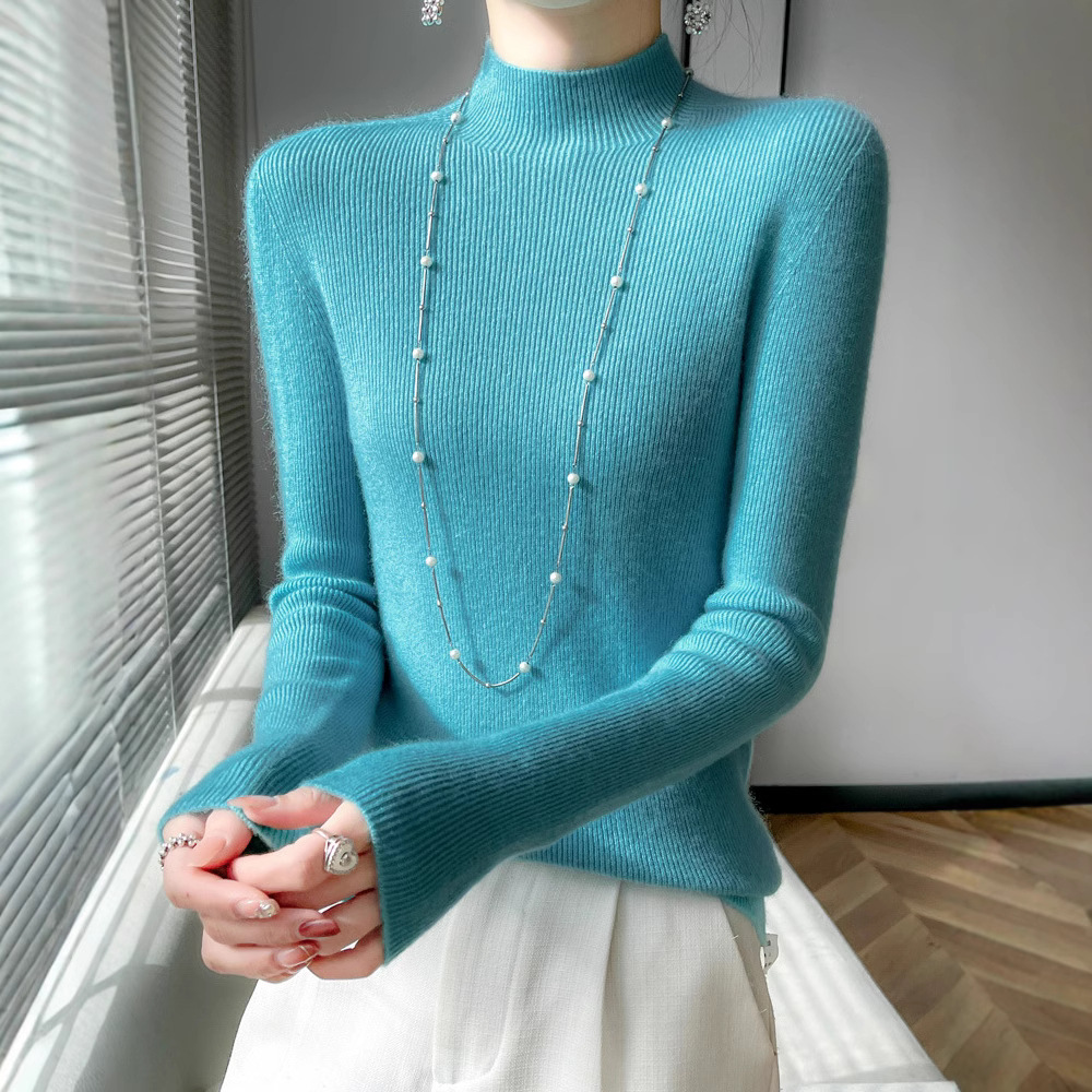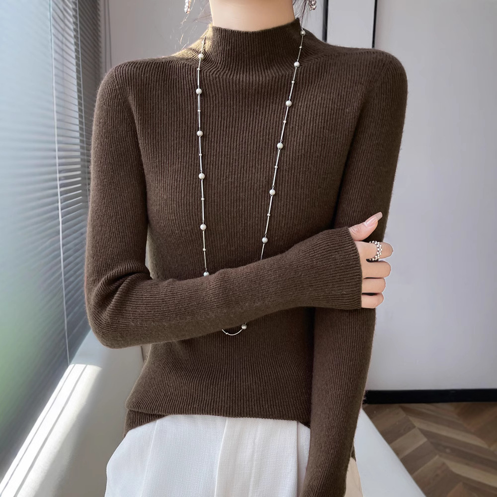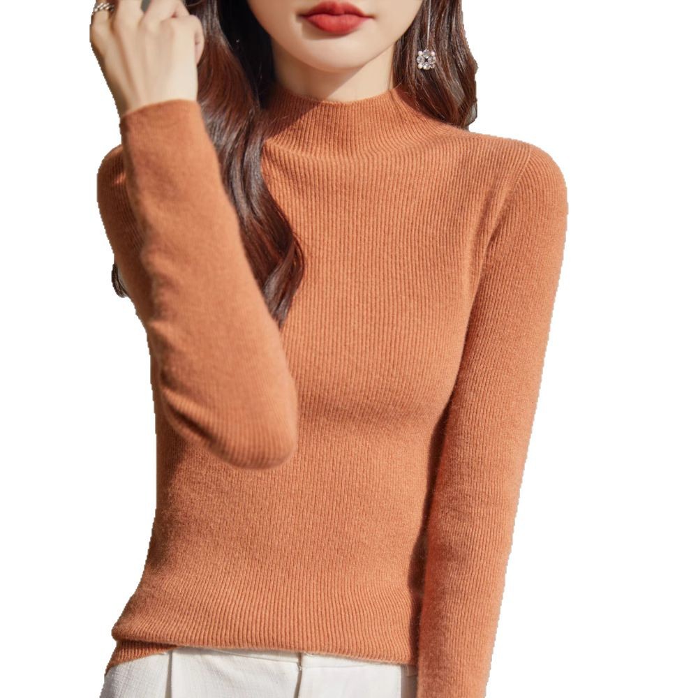 新年红打底衫秋冬半高领毛衣女内搭修身显瘦针织衫长袖纯色针织衫