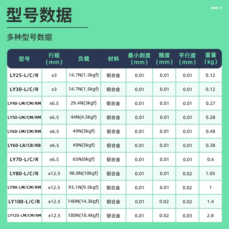 | 规格 | LY40-CB | 规格 | LY50-LM |