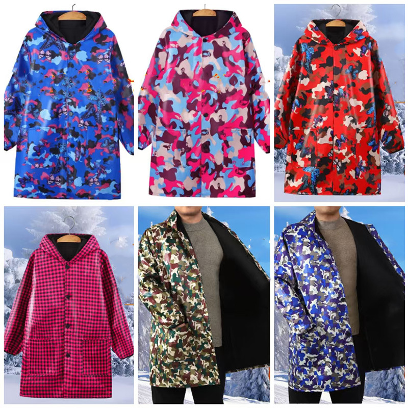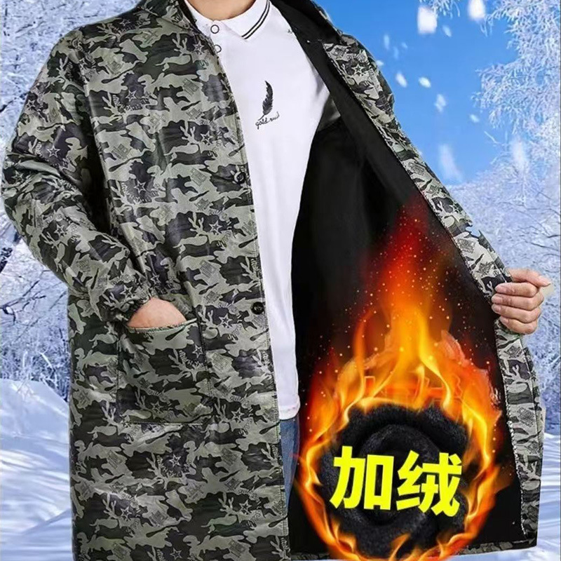 厂家直销男女保暖长袖围裙加绒加厚罩衣家用耐磨防水迷彩家务围裙