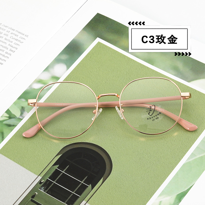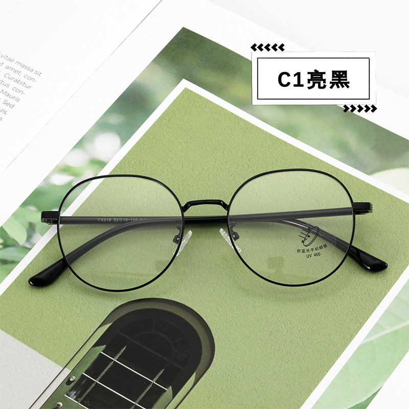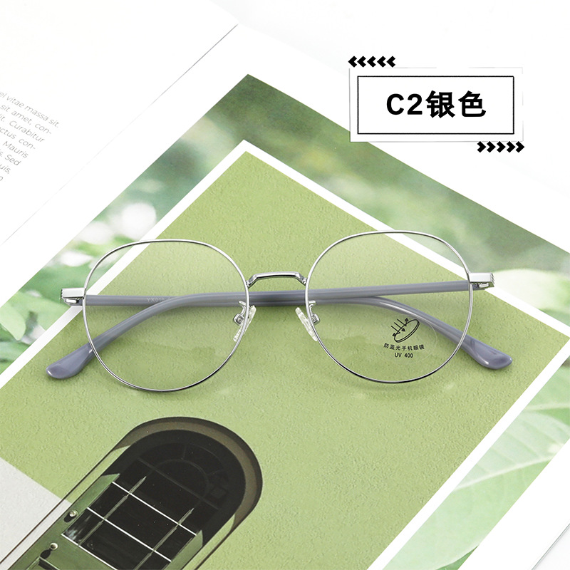 新款防蓝光眼镜架 简约圆脸显瘦平光镜素颜可配近视圆形金属镜架