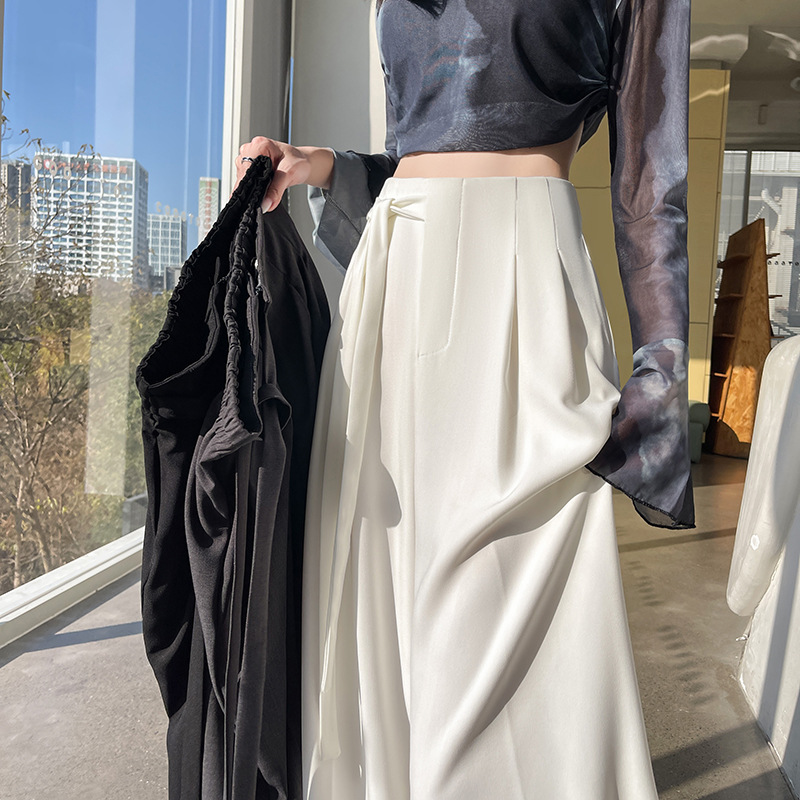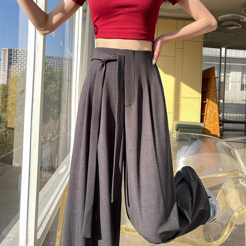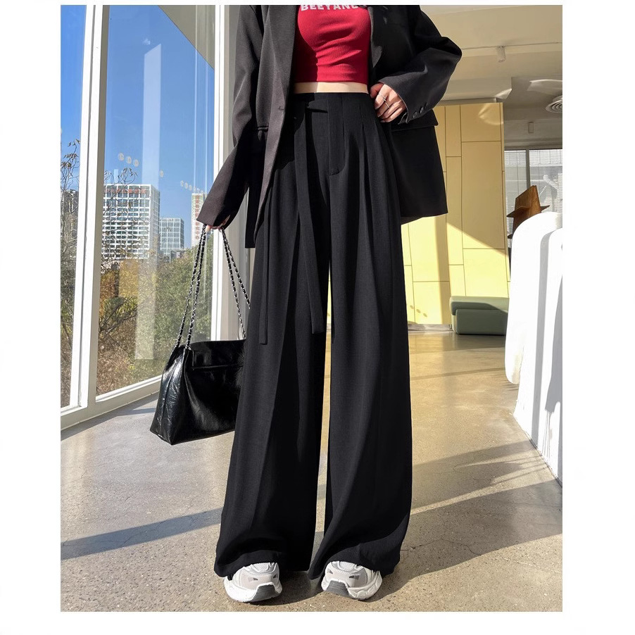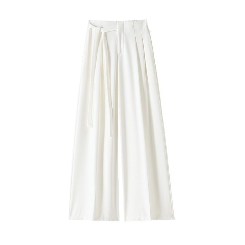 实拍 白色系带西装阔腿裤女2025春季垂感宽松高腰显瘦直筒拖地裤