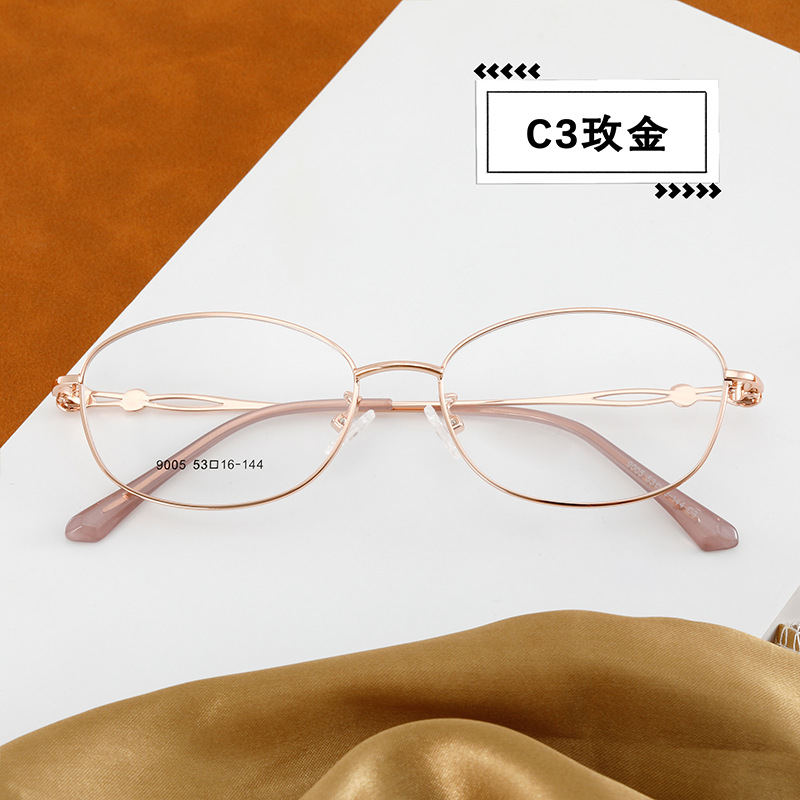 气质金属椭圆框近视眼镜女批发 时尚复古设计感高级防蓝光平光镜