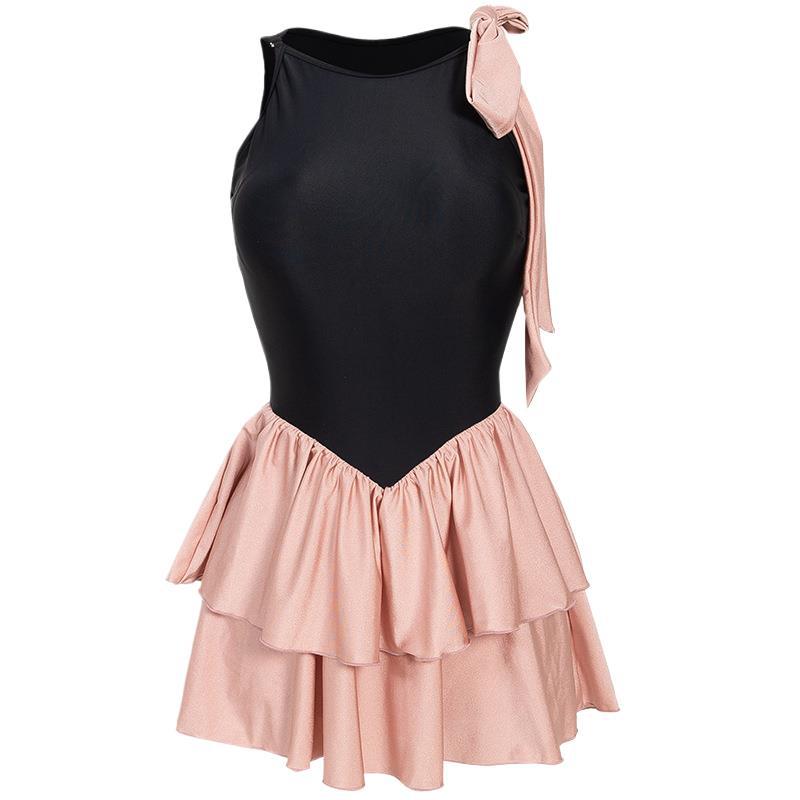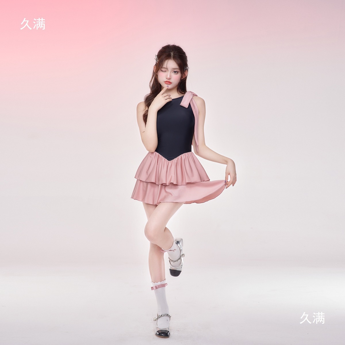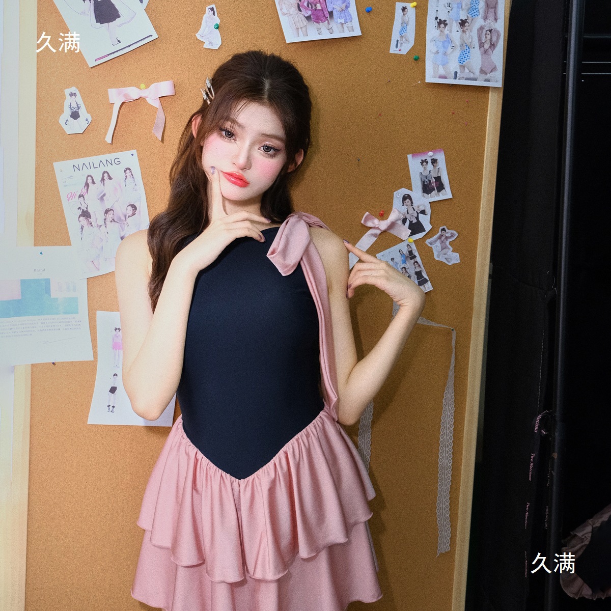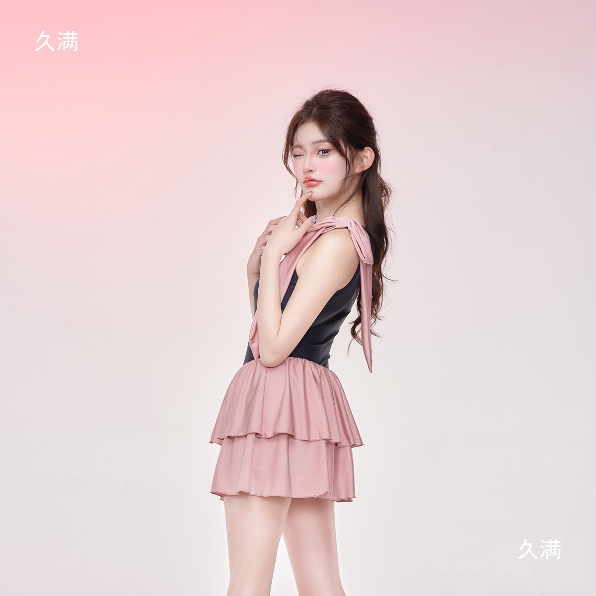 NLANG泳衣女2025新款仙气裙式欲遮肚带胸垫小胸聚拢无袖温泉