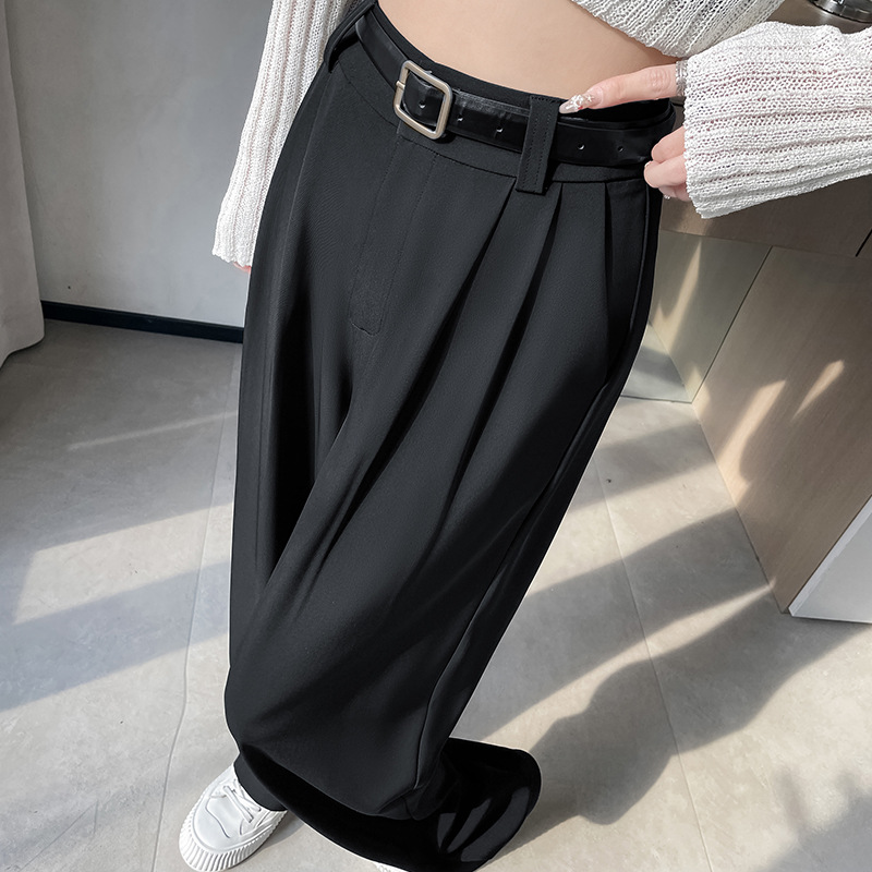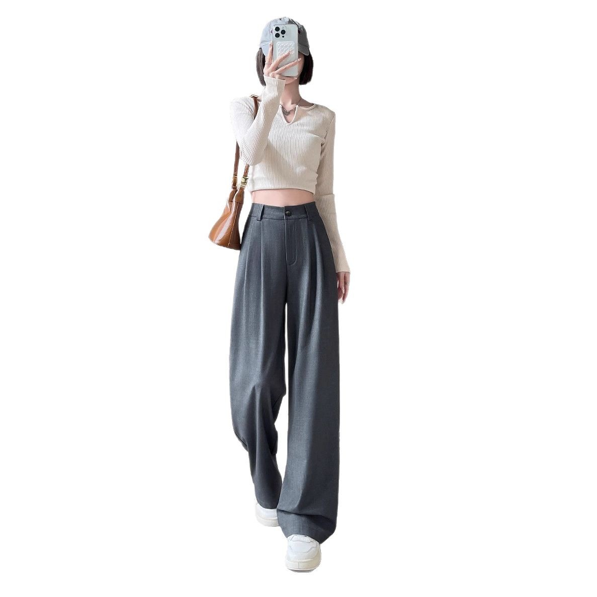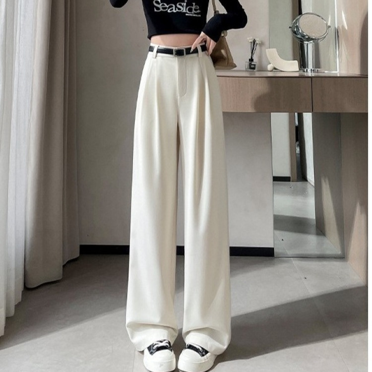 美式垂感西装裤女春夏款2025新款直筒宽松高腰显瘦黑色阔腿裤