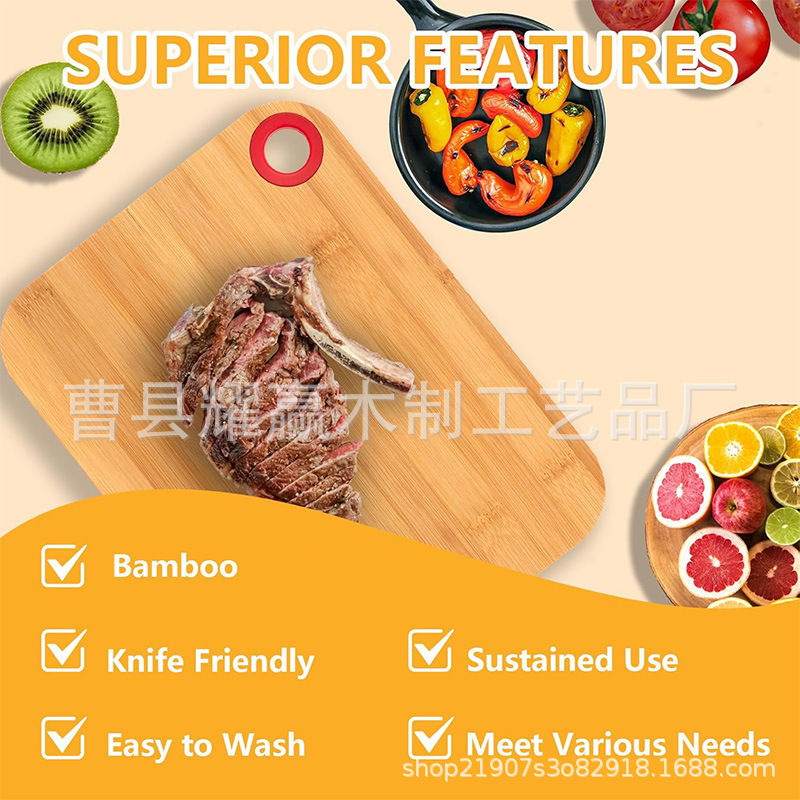 竹制菜板厨房多用途砧板户外便携熟食板套装竹木带孔可悬挂切菜板