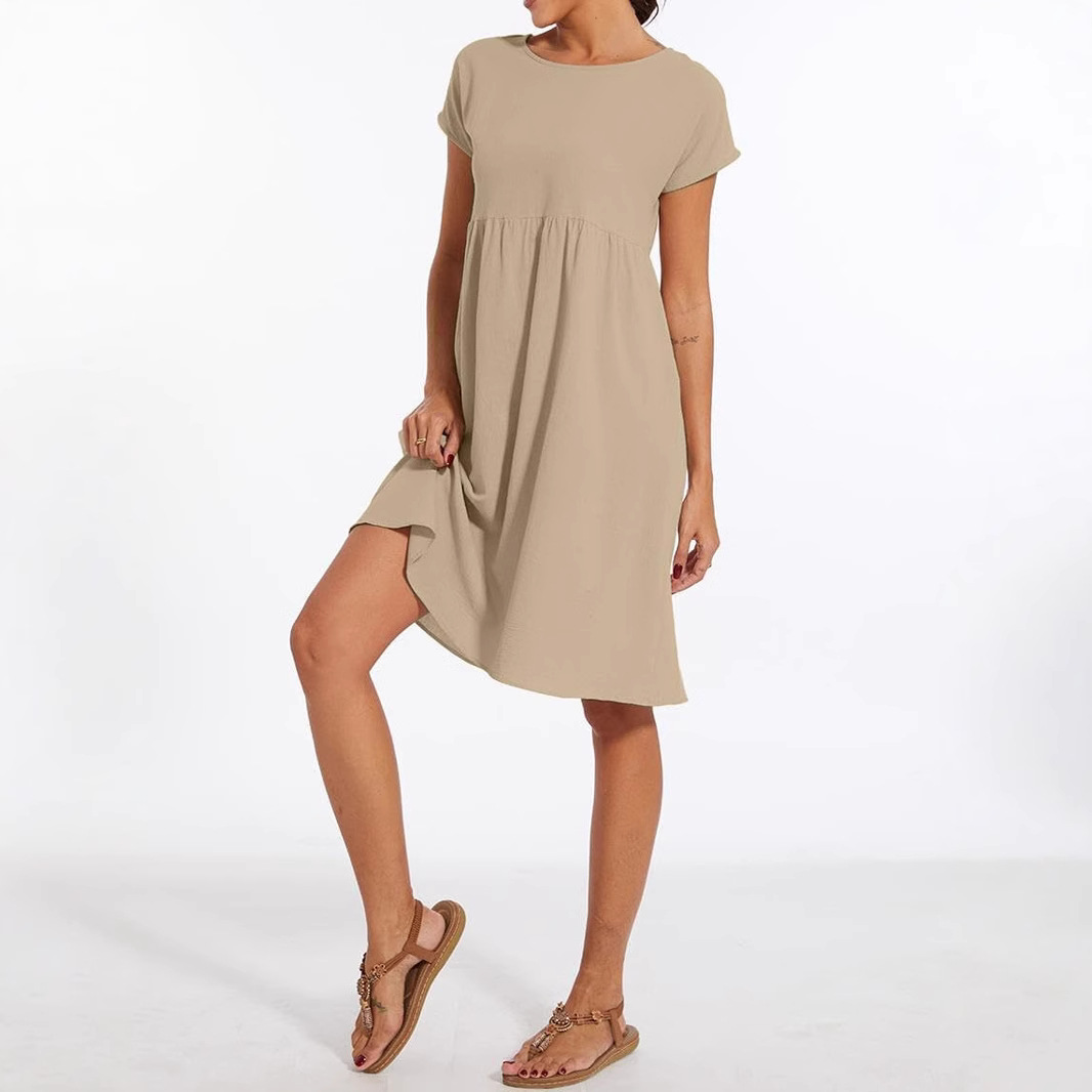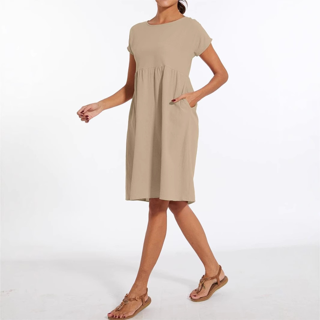 夏季女式连衣裙带宽松口袋2024中短袖棉质连衣裙长款衬衫连衣裙休