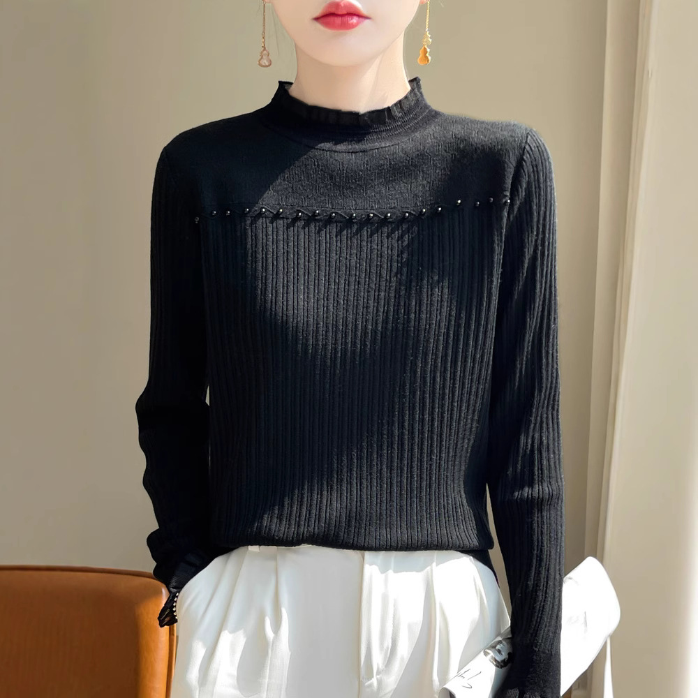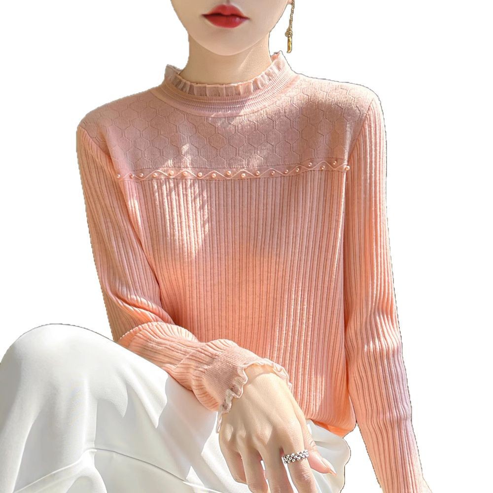 蕾丝打底衫女2024新款春秋内搭洋气钉珠针织上衣大码女装秋冬毛衣