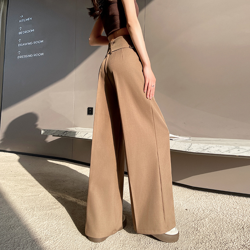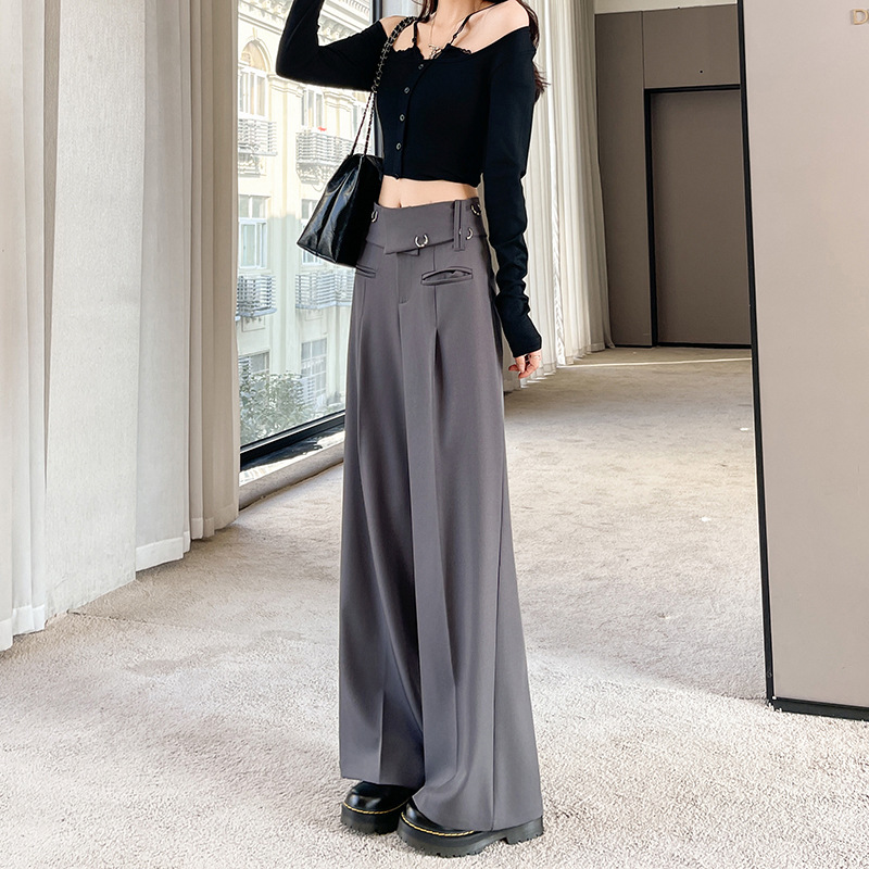 实拍!西装阔腿裤女2025春夏薄款高腰长裤设计感辣妹休闲拖地裤