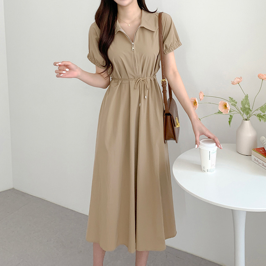 法式显瘦chic拉链2024气质夏季韩国收腰新款系带中长款连衣裙休闲
