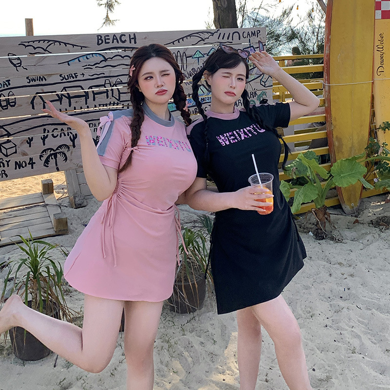 大码胖mm泳衣2025新款夏微胖女孩保守分体200斤遮肚温泉拍照泳衣