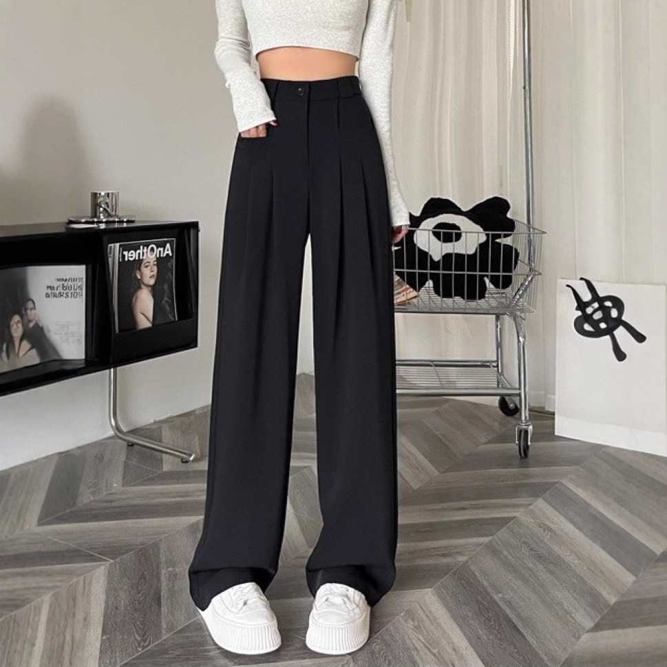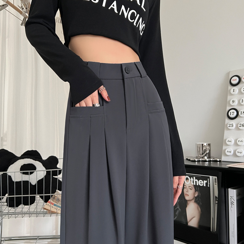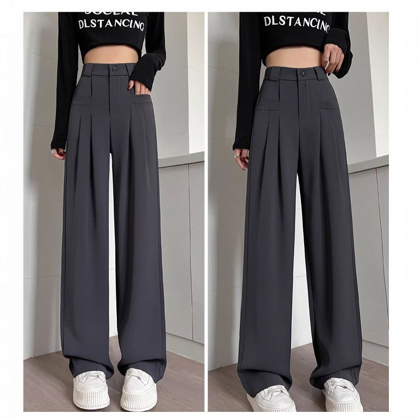 梨形身材黑色西装2025春夏高腰垂感显瘦直筒休闲阔腿裤子