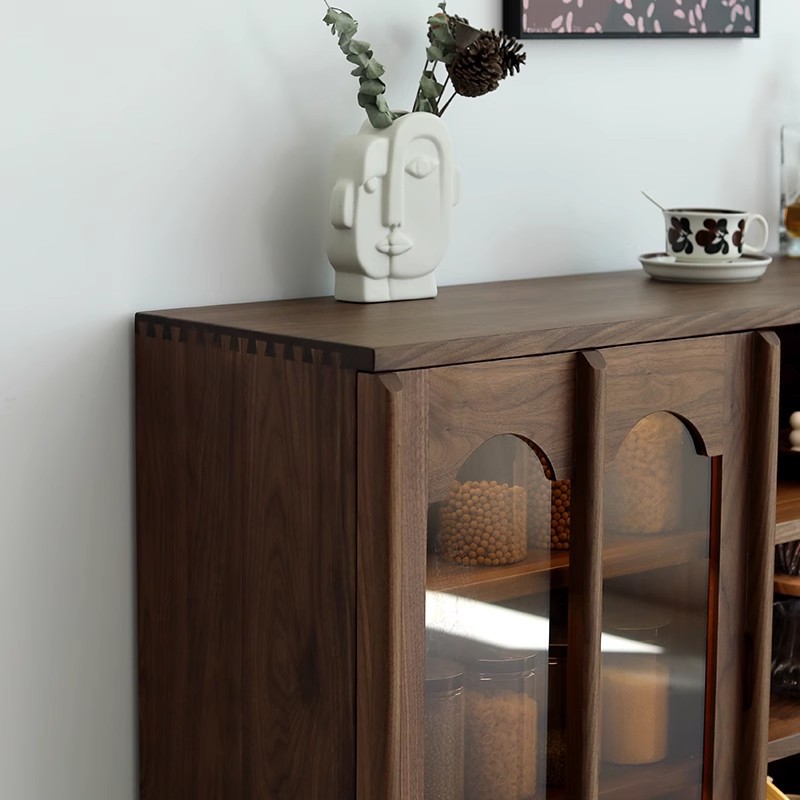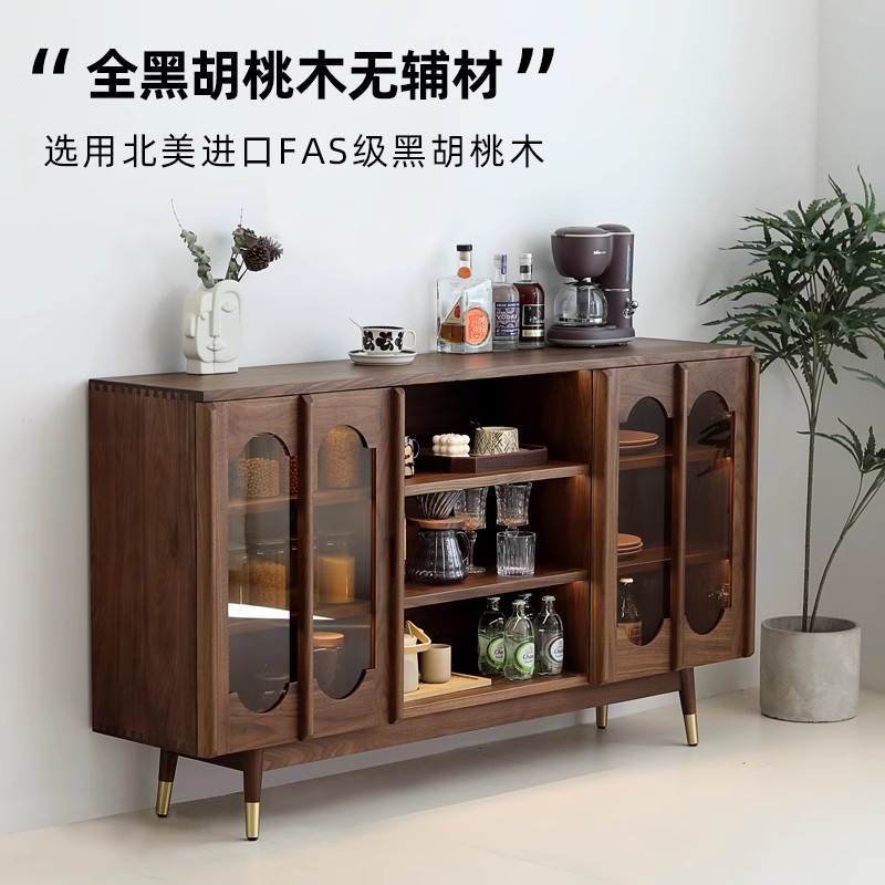 北美黑胡桃木餐边柜储物一体靠墙中古轻奢高级感美式复古边柜定制