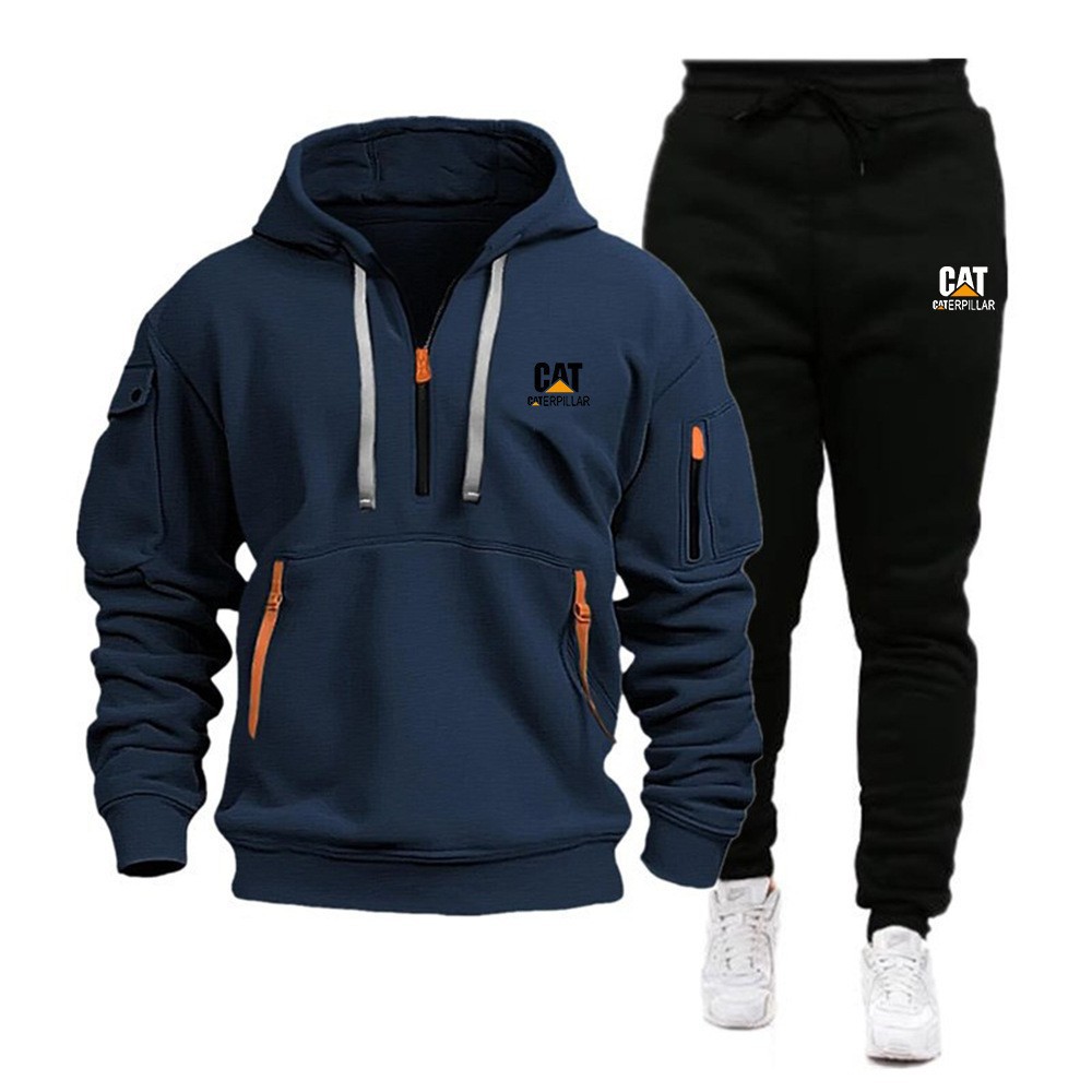 2025抓绒连帽外套跨境男装拉链多口袋卫衣秋冬季印花男士卫衣套装