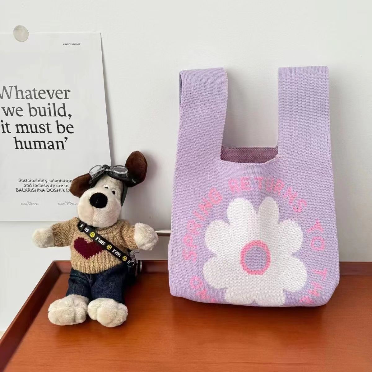 ins网红手提包女针织毛线水桶包日韩版百搭手拎休闲托特包盒饭袋