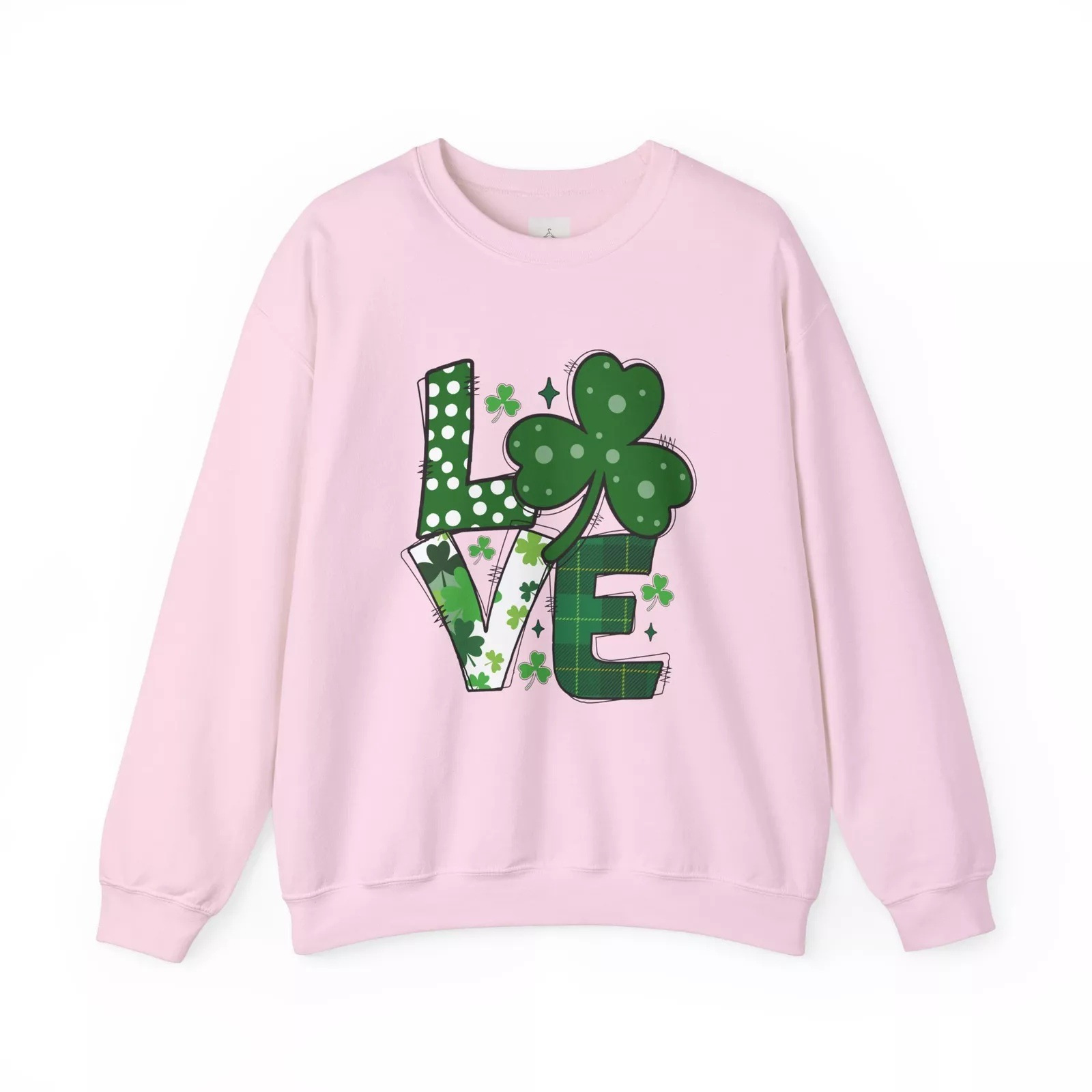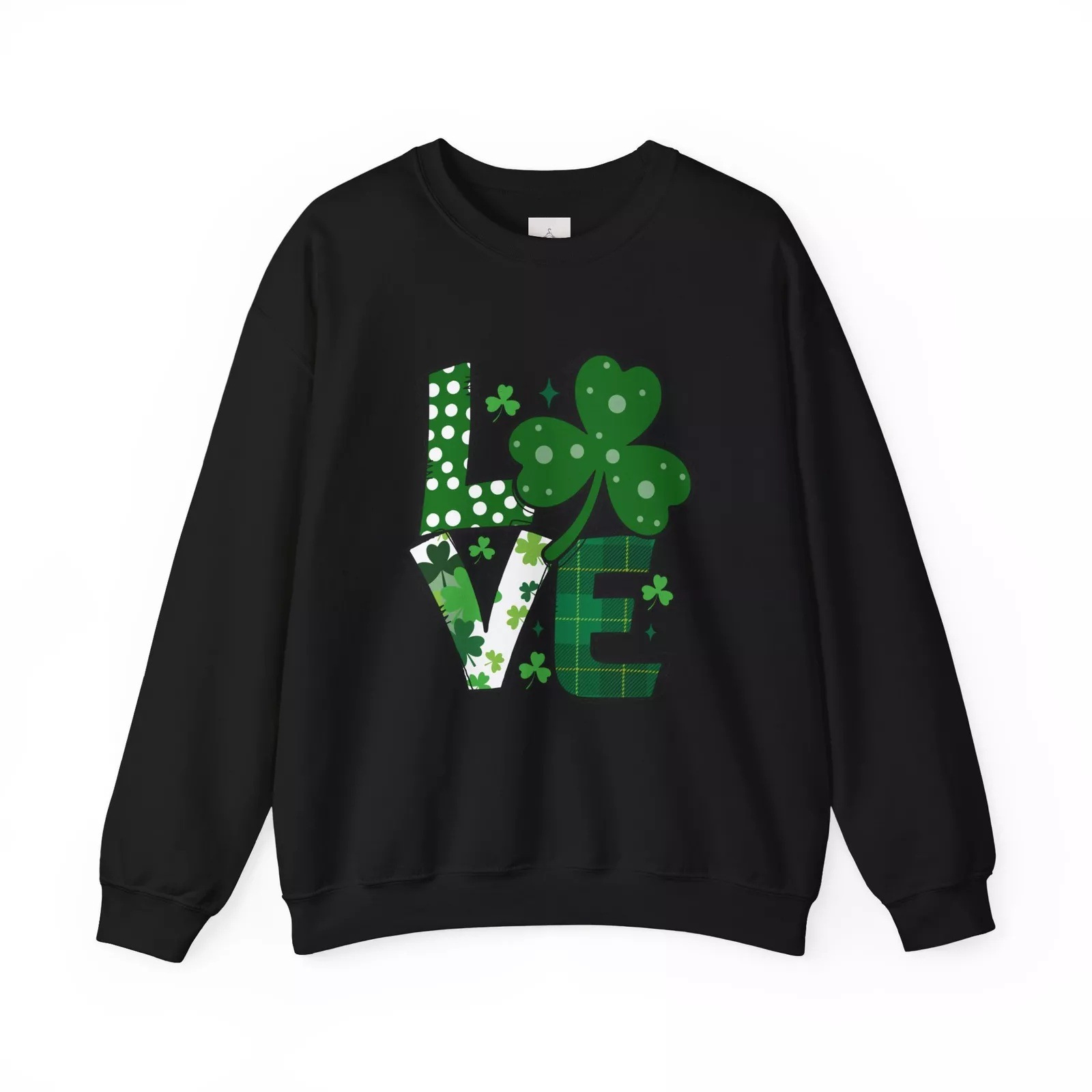 跨境热卖圣帕特里克节运动衫LOVE三叶草图案印花假日休闲纯棉卫衣