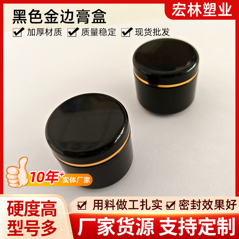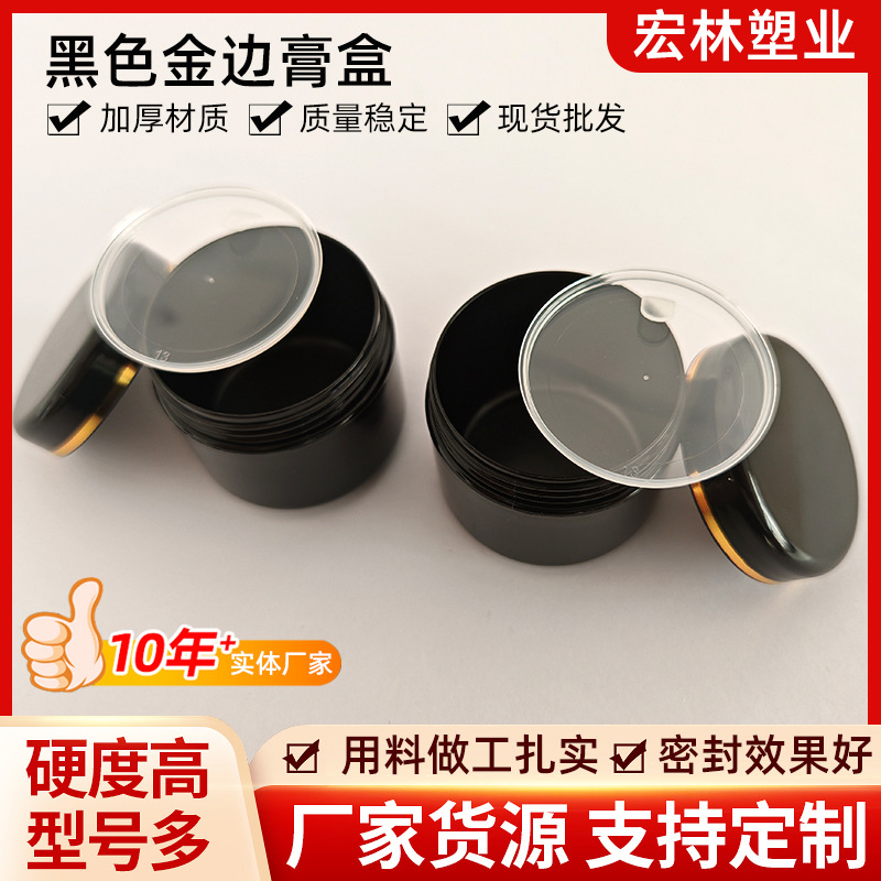 20g30g50g100克黑色金边膏盒PP面霜圆盒化妆品包装分装小样膏盒