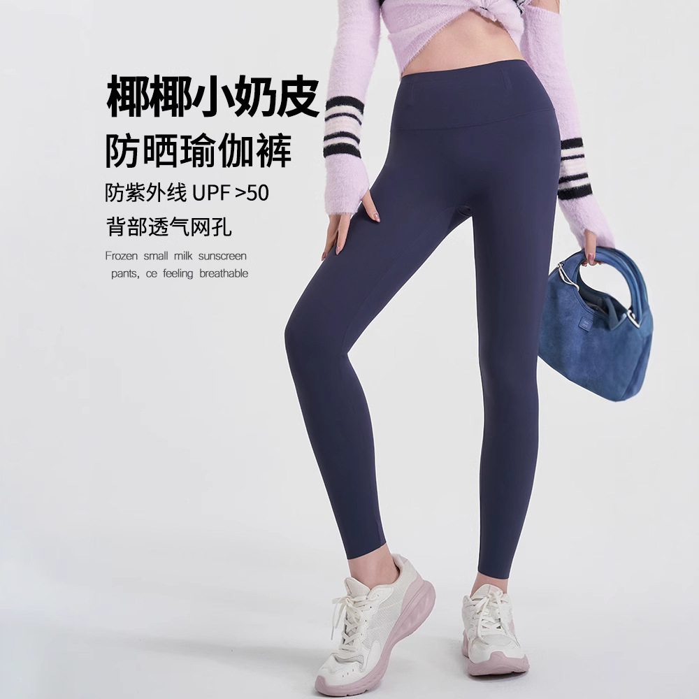 春夏新款lulu瑜伽裤女高腰提臀奶皮裤收腹塑形瑜伽健身冰皮防晒裤