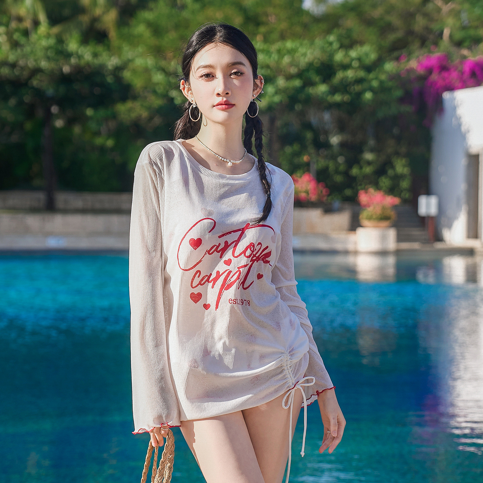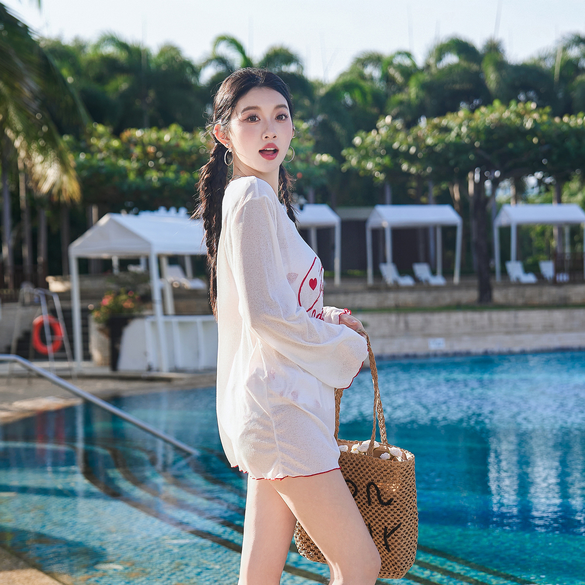 新款纯欲比基尼泳衣三件套小胸聚拢高档罩衫防晒三角性感沙滩泳装