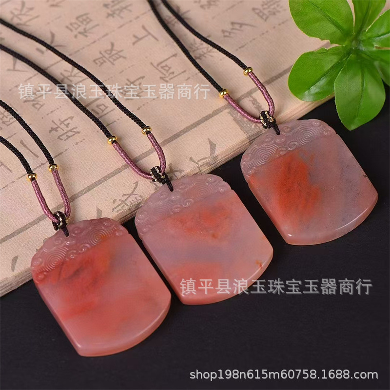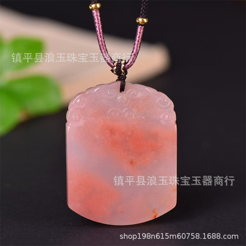 天然玉石金丝玉佘太翠桃花酿无事牌男女款吊坠直播货源