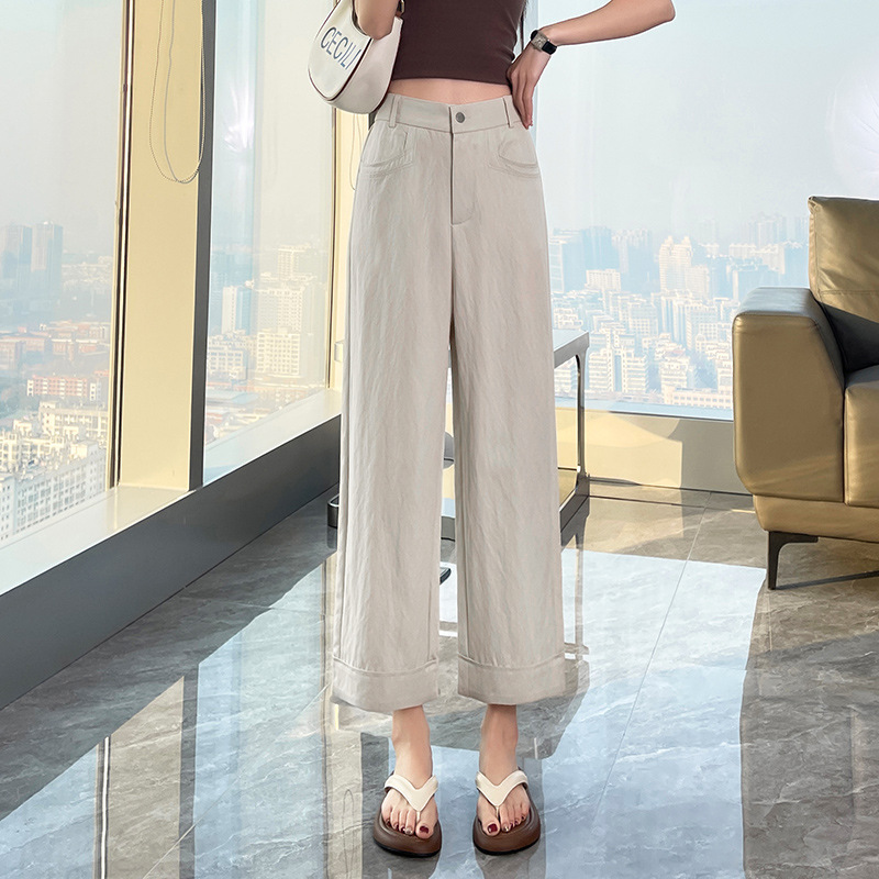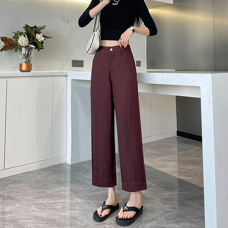 八分阔腿裤女春夏2025新款日系直筒裤高腰显瘦小个子九分休闲裤子