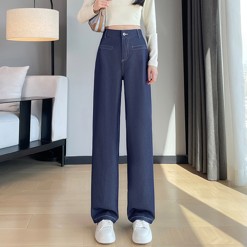丹宁蓝直筒牛仔裤女2025春夏新款松弛感高腰香蕉裤小个子显瘦阔腿