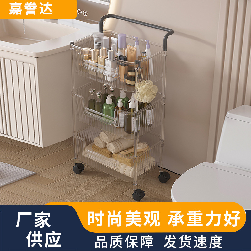 定制可移动置物架透明多层小推车水果蔬菜收纳架卫生间化妆品柜子