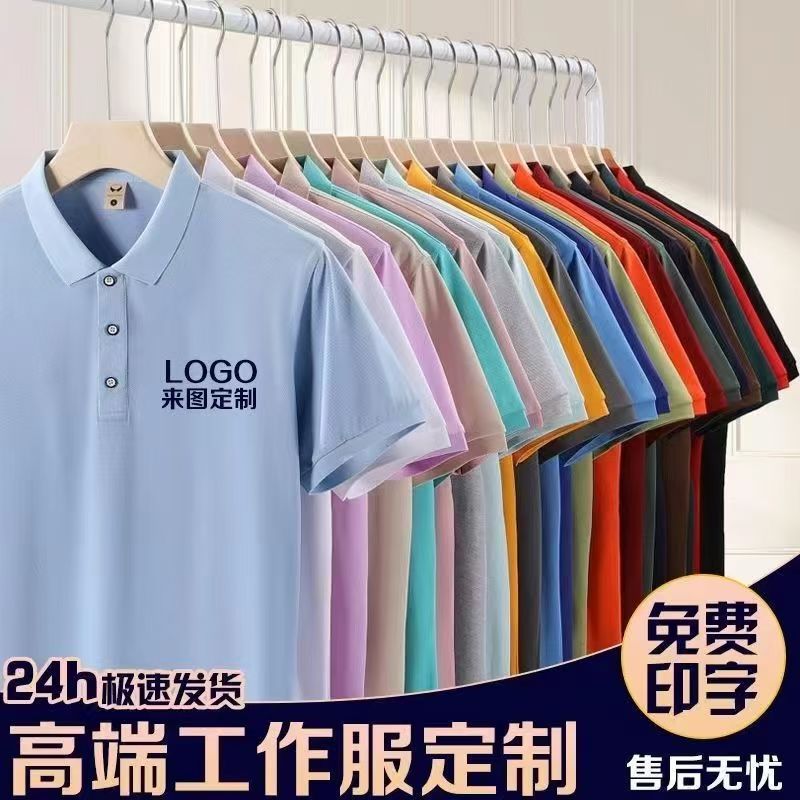 冰丝翻领短袖工作服polo衫刺绣短袖文化衫企业活动团建毕业班服