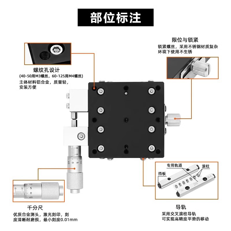 主营产品:手动位移平台千分头交叉导轨型精密微调滑台燕尾槽涡轮蜗杆齿轮齿条型调节平台R轴旋转滑台z轴升降平台
