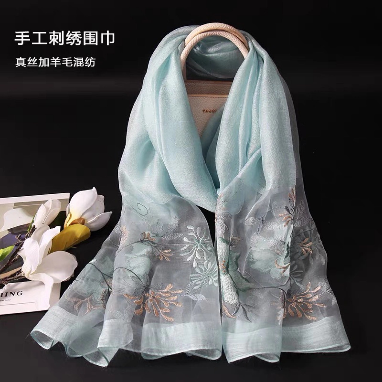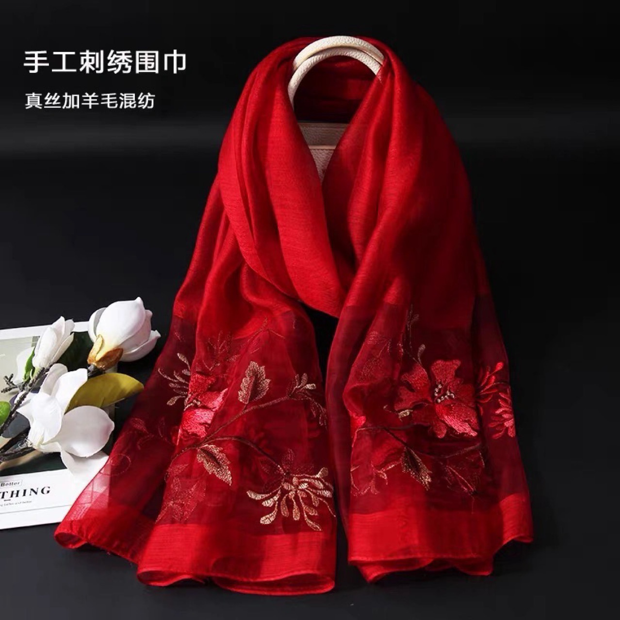 红色喜庆妈妈婚礼婚宴装真丝羊毛旗袍披肩长款围巾外披薄款披肩女