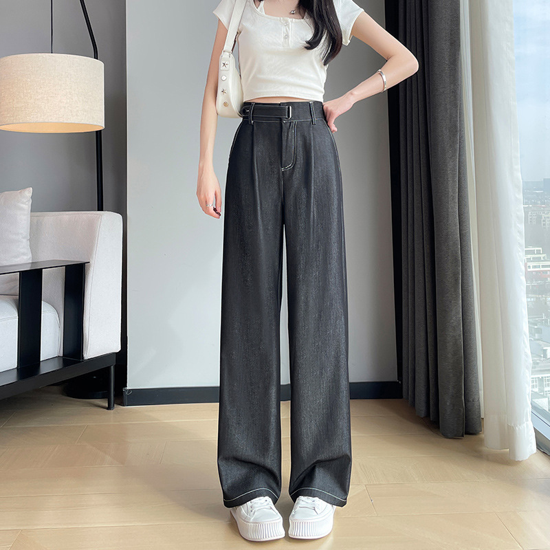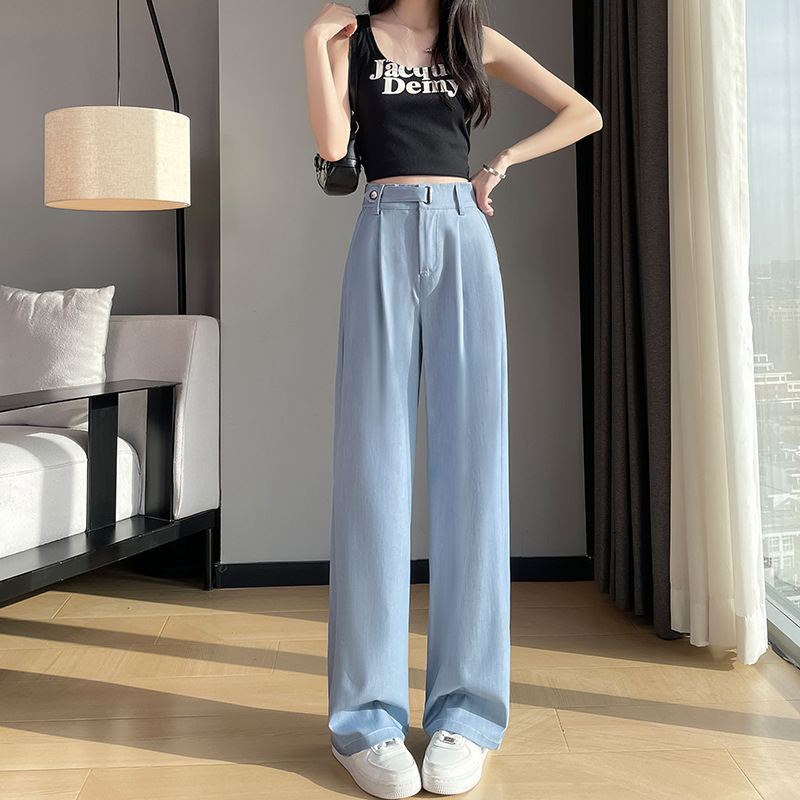 丹宁蓝牛仔阔腿裤女春夏2025新款小个子直筒裤显瘦高腰垂感拖地裤