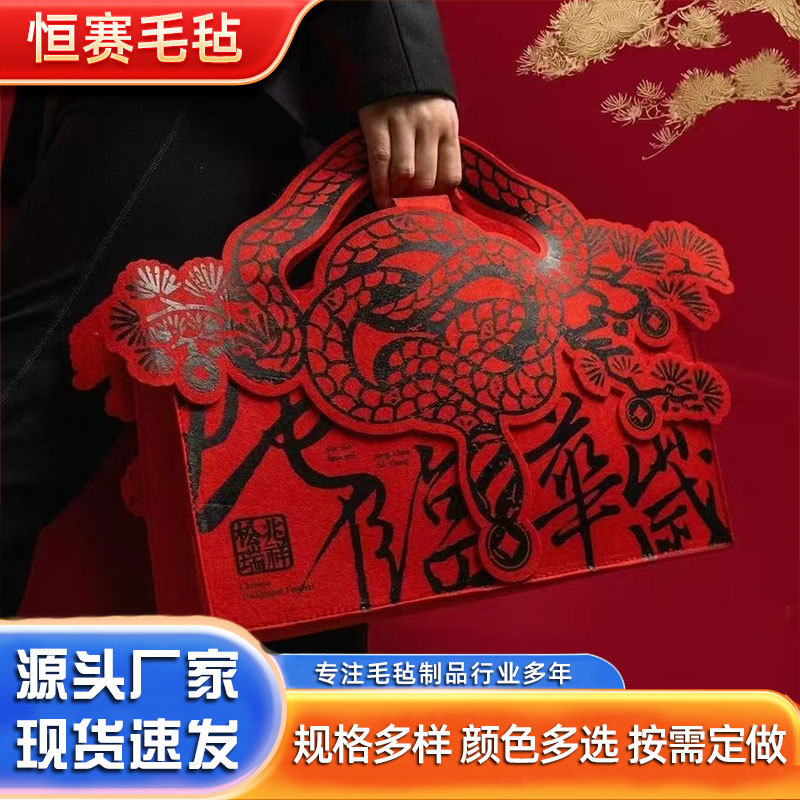 中秋毛毡手提袋大容量购物毛毡包节日祝福伴手礼品袋 毛毡托特包