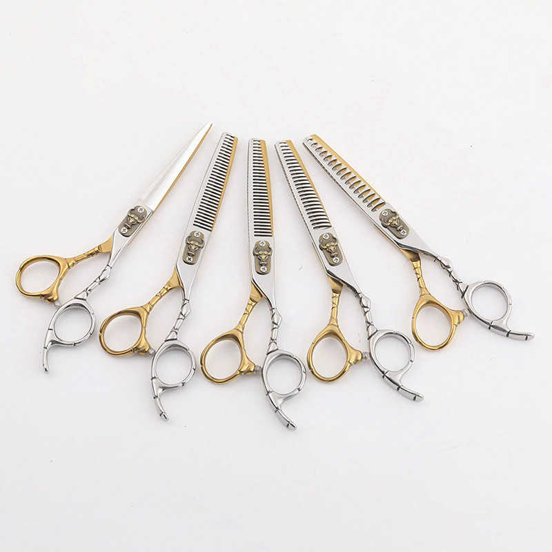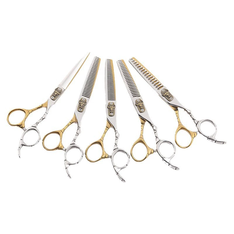美发剪刀亚马迅跨境理发剪刀平剪牙剪套装黑色金色美发剪套装锋利