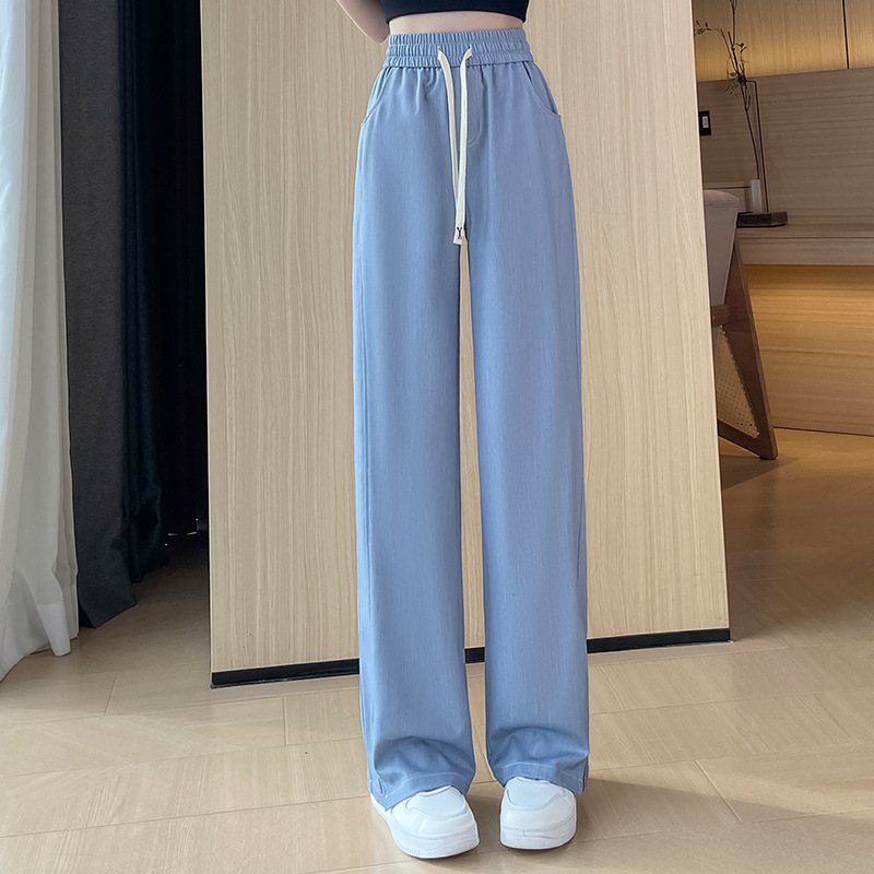 丹宁蓝牛仔裤女春夏薄款2025新款高腰窄版阔腿裤小个子凉凉直筒裤