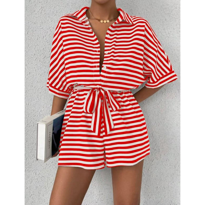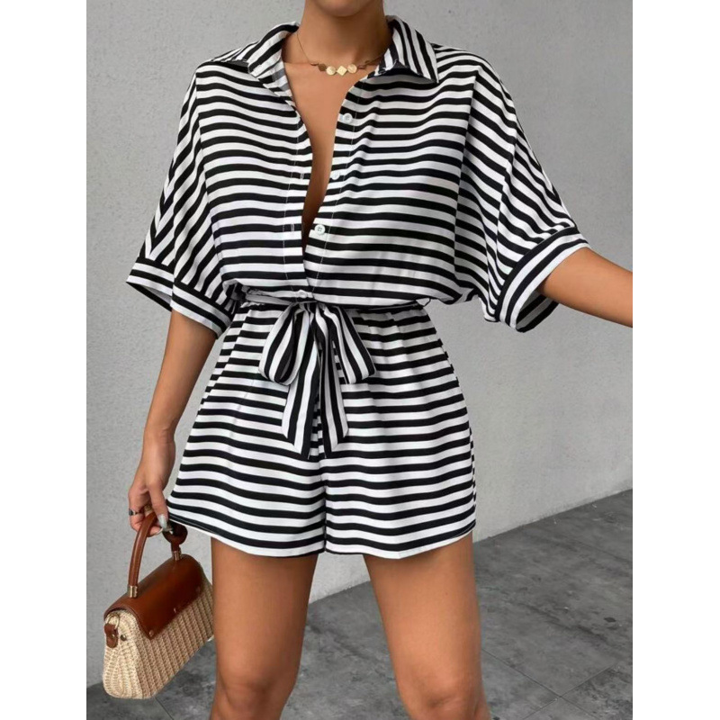 欧美跨境亚马逊独立站wish爆款2025夏季休闲时尚条纹女装连体裤