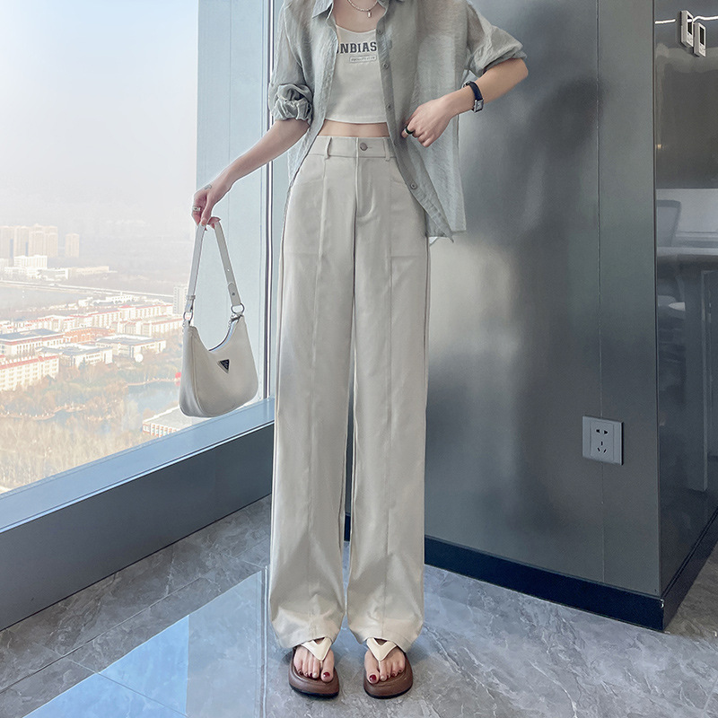 窄版阔腿裤女春夏季2025新款高腰垂感直筒裤宽松显瘦小个子西装裤