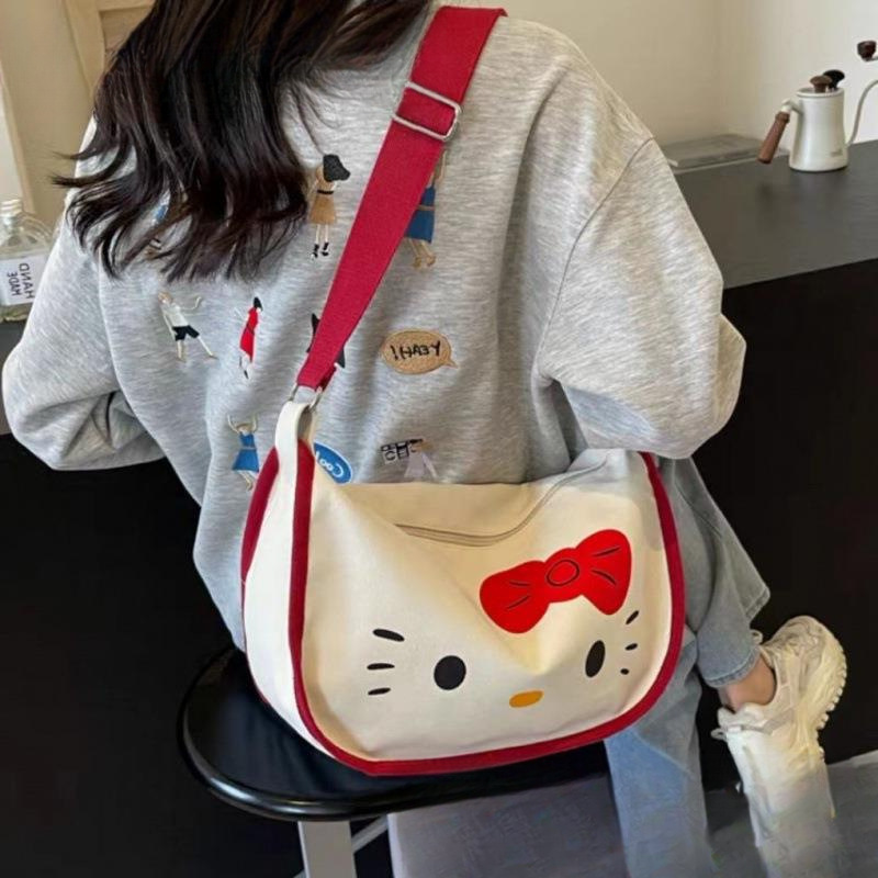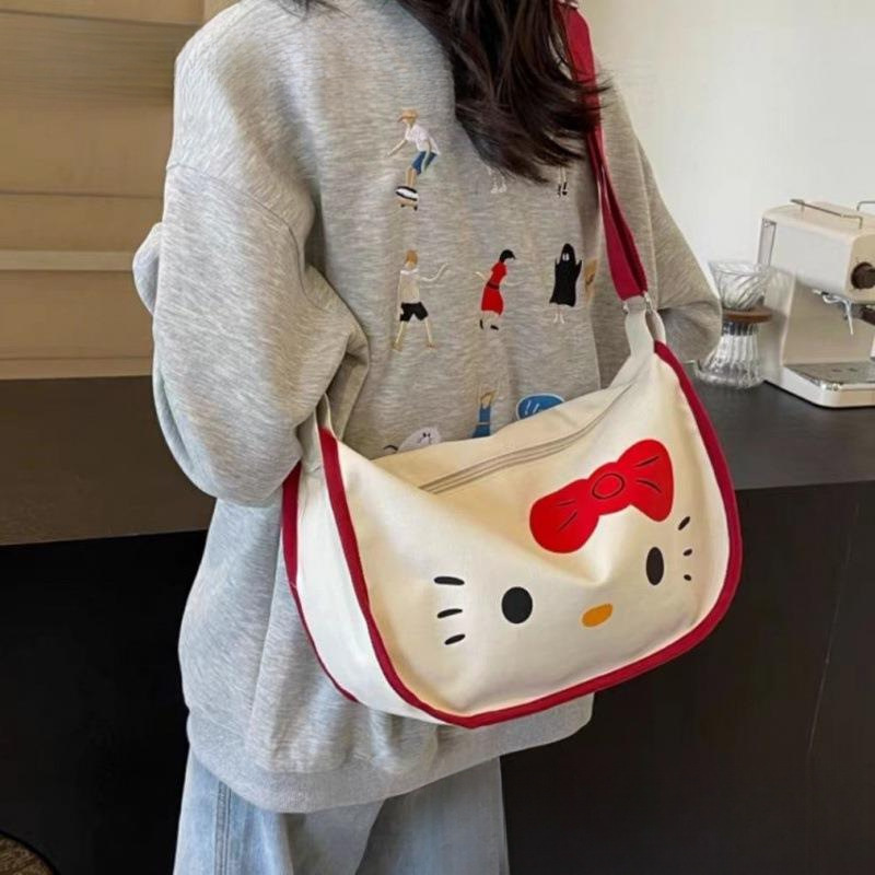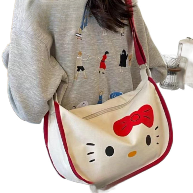 日系卡通帆布包女新款小众设计可爱上课百搭单肩马鞍包斜挎饺子包