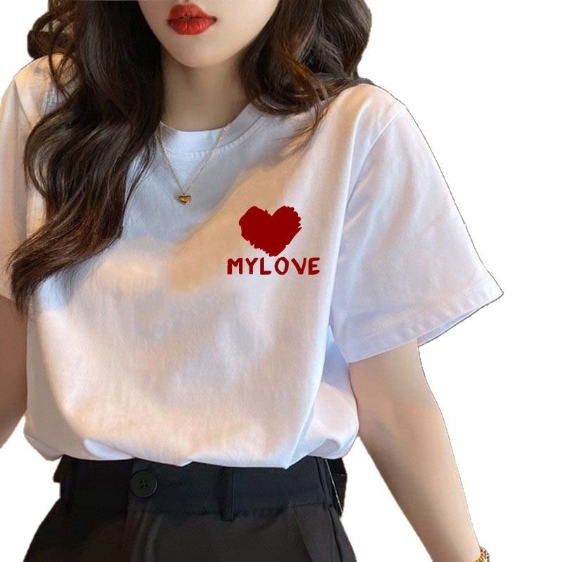 重磅纯棉女短袖T恤夏季韩版2025新款宽松学生爱心打底衫一件代发