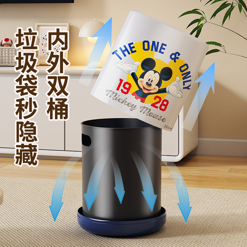 正版授权米奇垃圾桶家用大号双层创意收纳桶无盖高颜值厨房纸篓