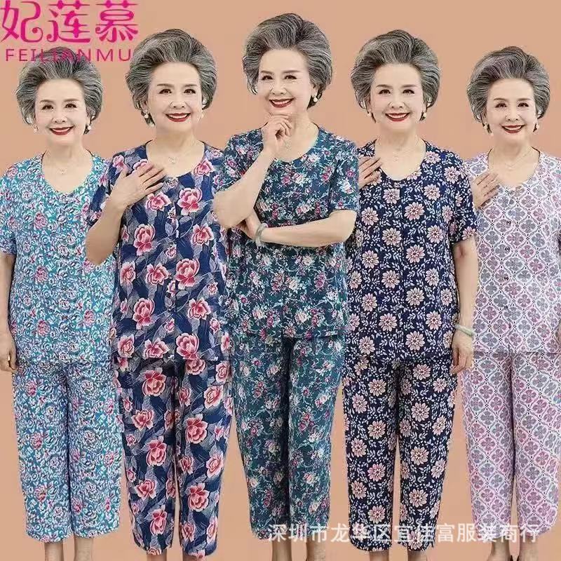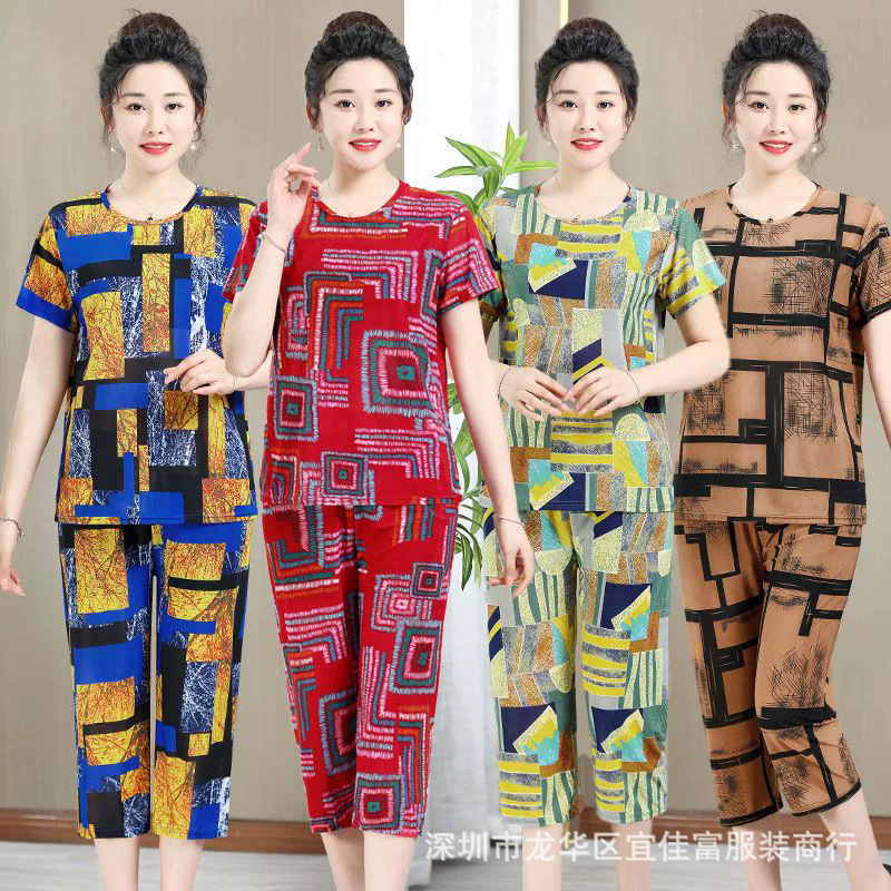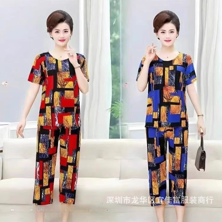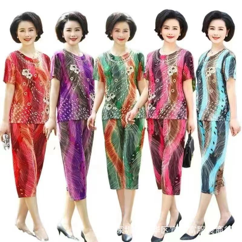 2025夏季宽松两件套轻薄洋气冰丝透气时尚套装 1元大码中老年妈妈