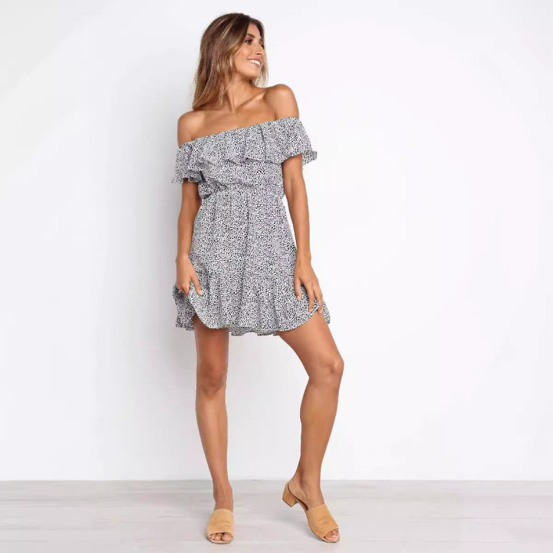 亚马逊欧美外贸新款 性感一字领两穿荷叶边短袖连衣裙女装短裙