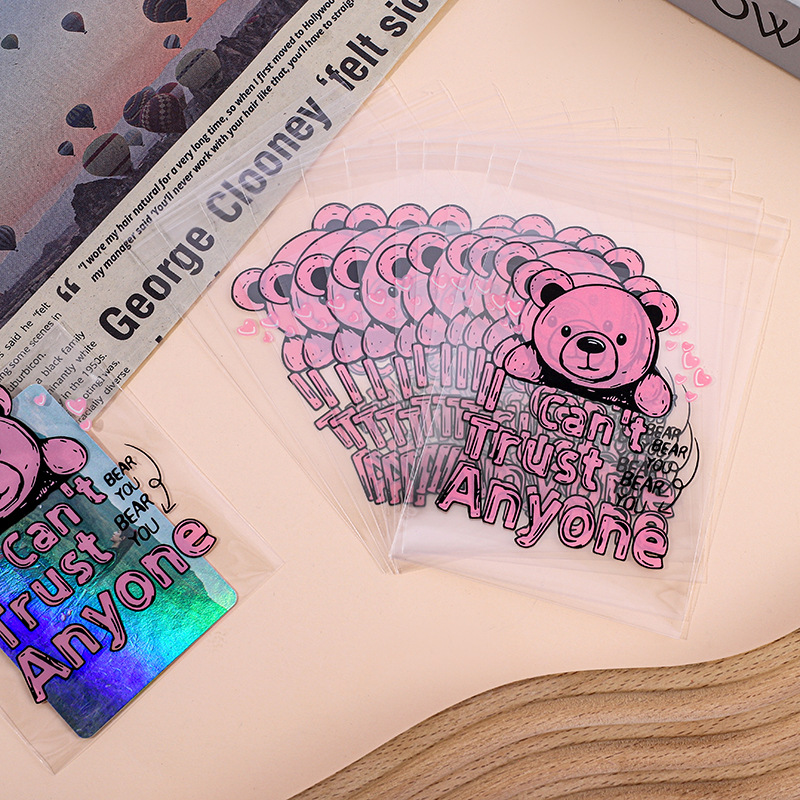 卡通小熊印花包装袋自黏袋明星小卡照片饰品自封袋厂家直供自封口