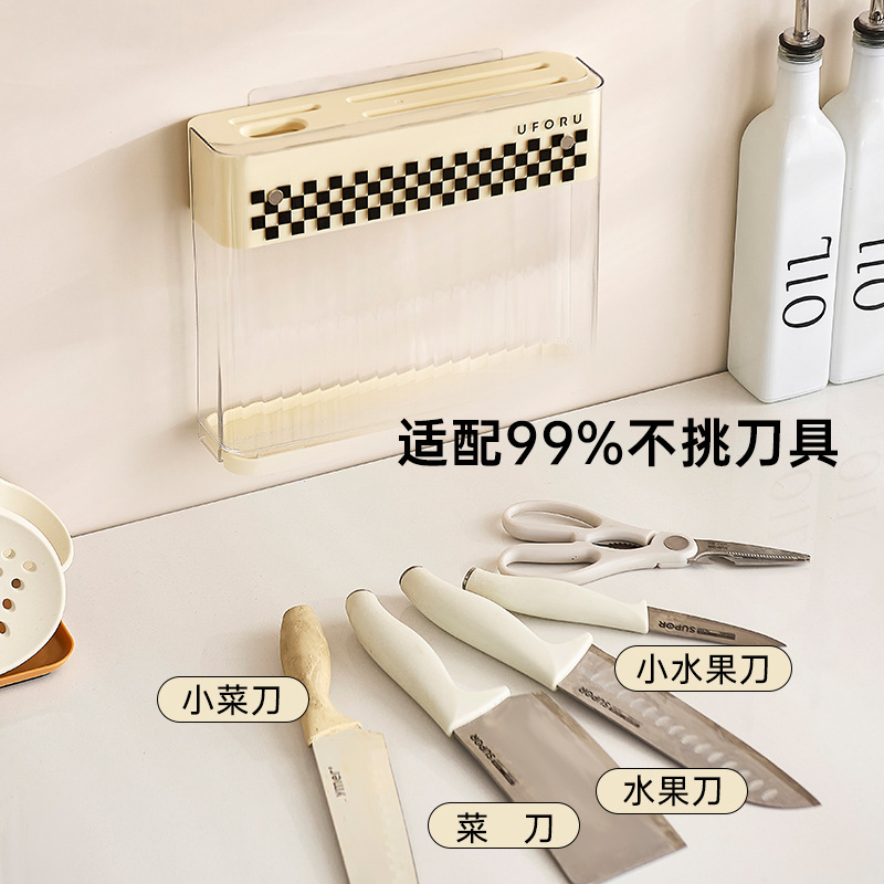 奶油风壁挂刀架家用免打孔厨房刀具菜刀多功能一体式架台面置物架