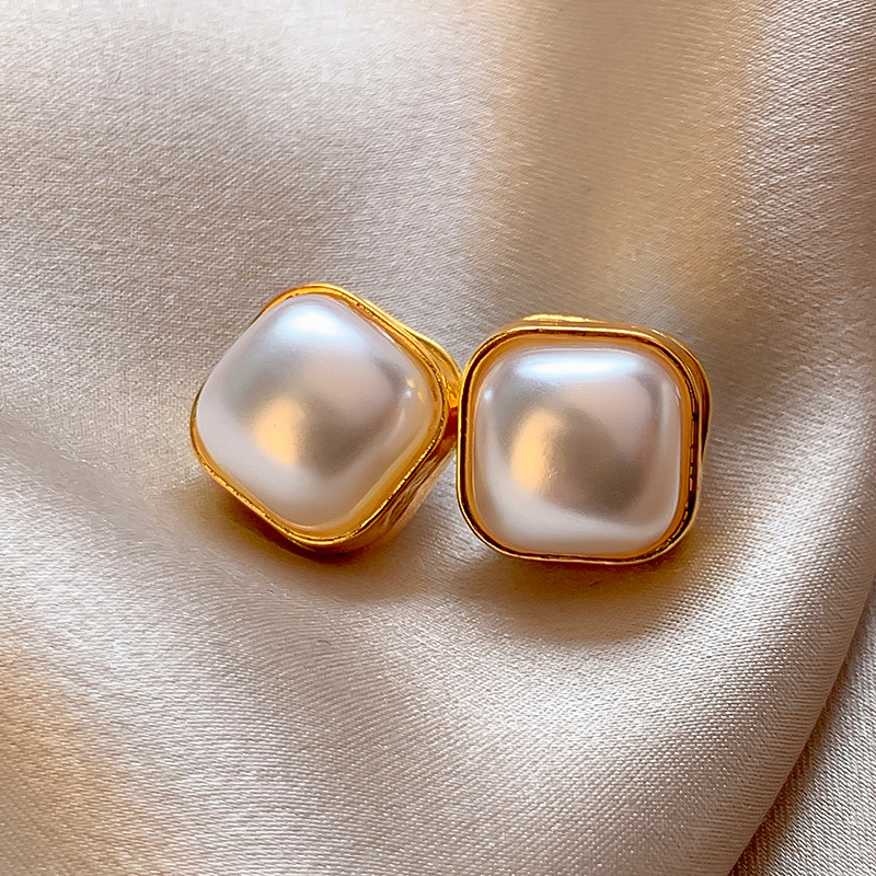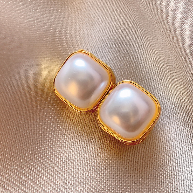 2025年新爆款磁吸无耳洞珍珠耳夹女方形吸铁石耳环个性百搭耳饰品