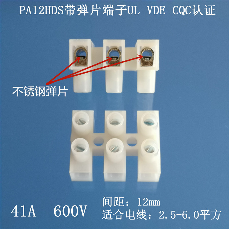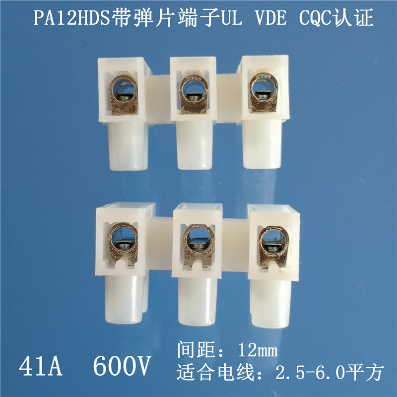 PA12带弹片接线端子PA12HDS-3P带垫片端子台带保护片端子