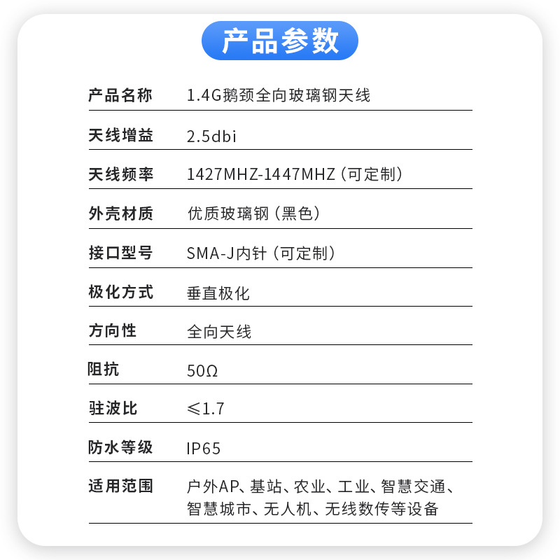 型号1.4G全向鹅颈玻璃钢天线