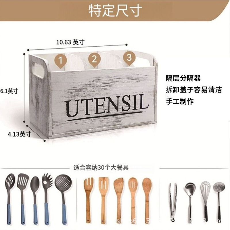 现货实木复古收纳盒桌面做旧餐具分格盒餐具收纳盒厨房收纳整理盒